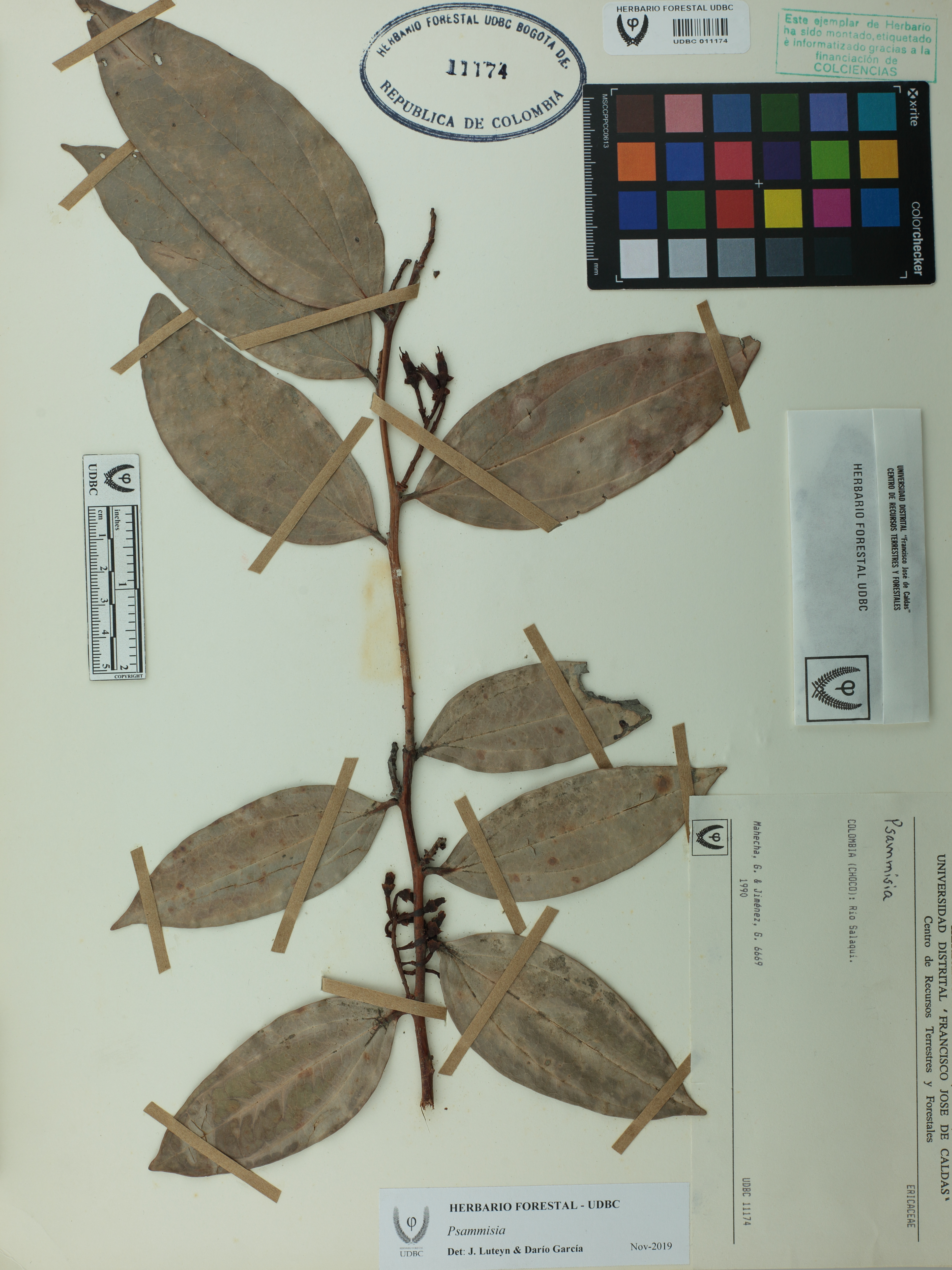 Fotografía del ejemplar Mahecha, G. 6669, determinado como Psammisia sp. en el año 2019