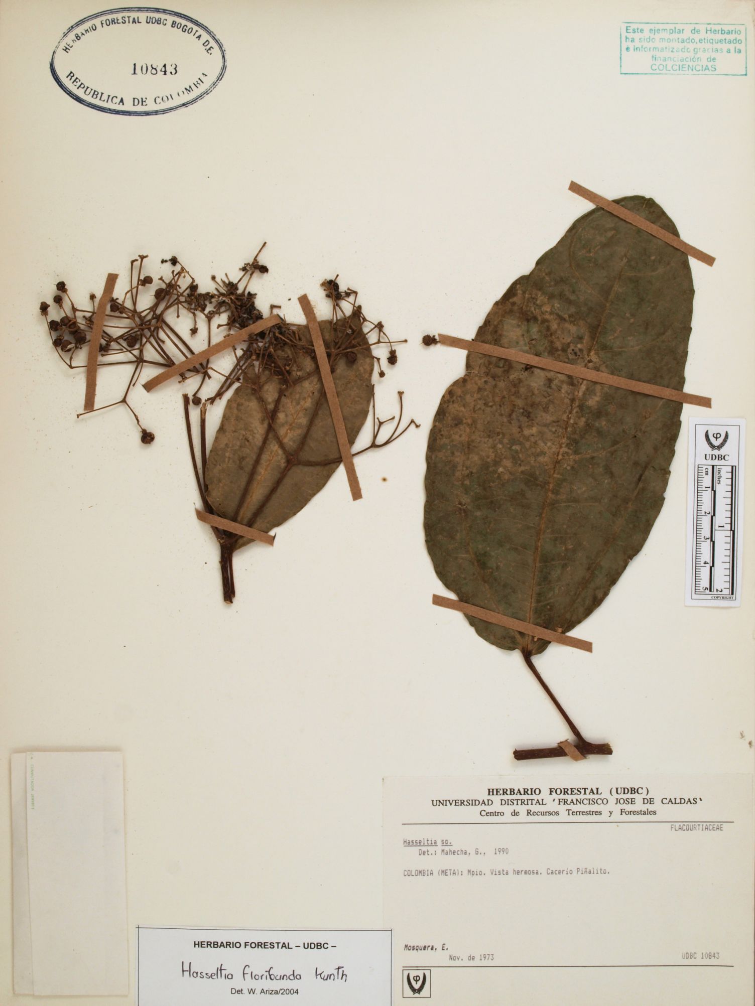 Fotografía del ejemplar Mosquera, E., determinado como Hasseltia floribunda en el año 1990