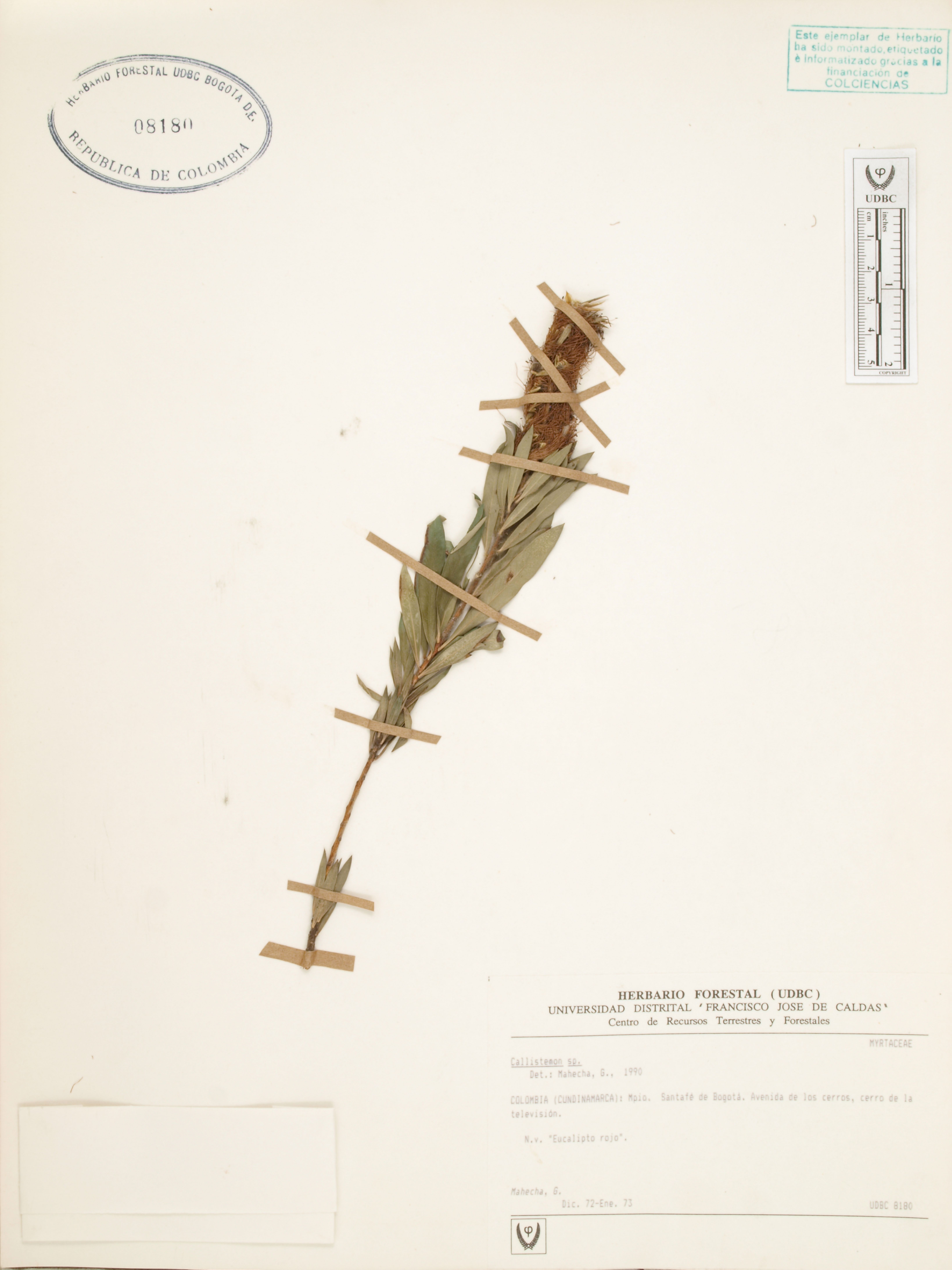 Fotografía del ejemplar Mahecha, G., determinado como Callistemon sp.