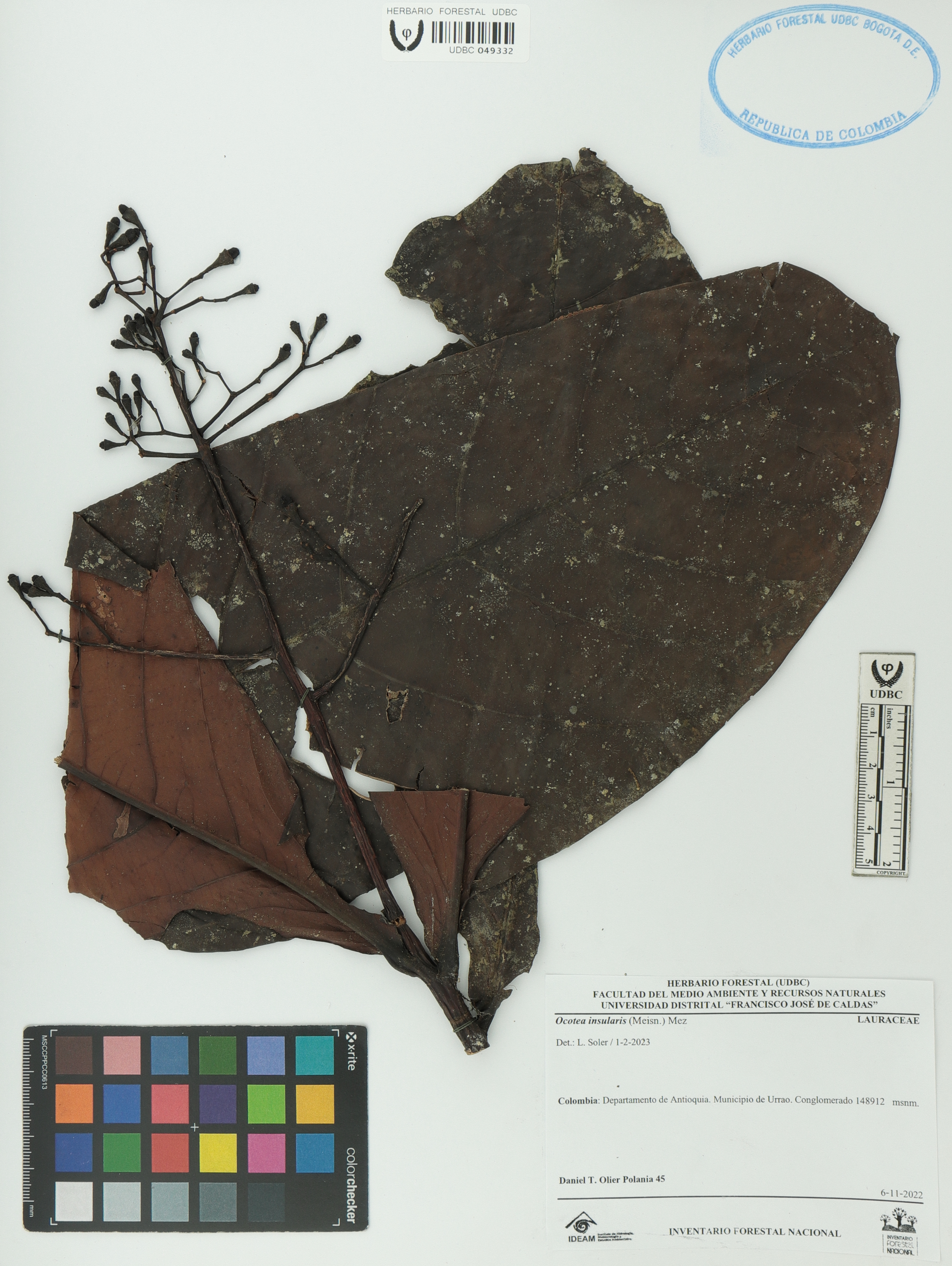 Fotografía del ejemplar Olier-Polania, D. 45, determinado como Ocotea insularis en el año 2023