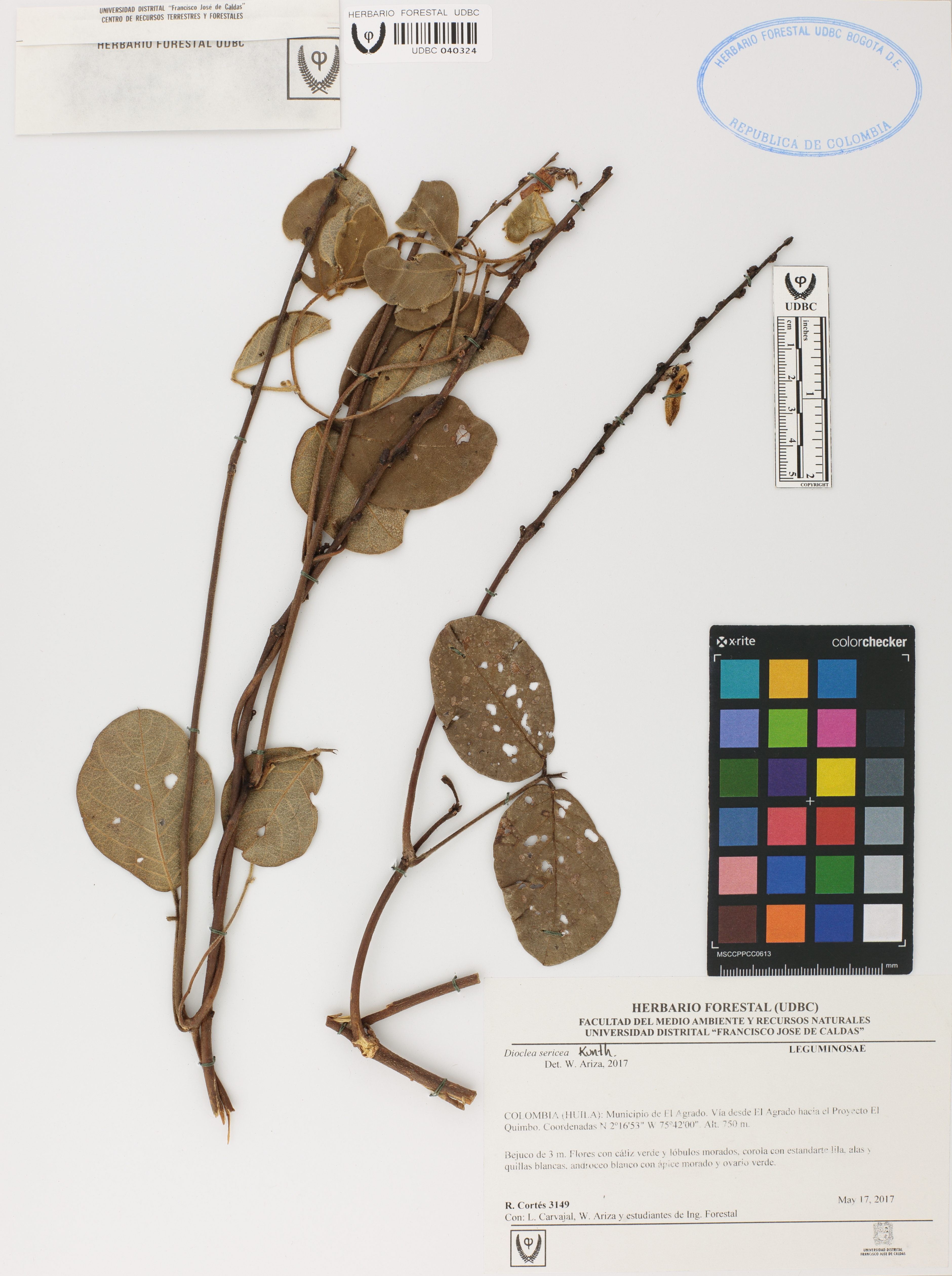 Fotografía del ejemplar Cortés, R. 3149, determinado como Dioclea sericea en el año 2017