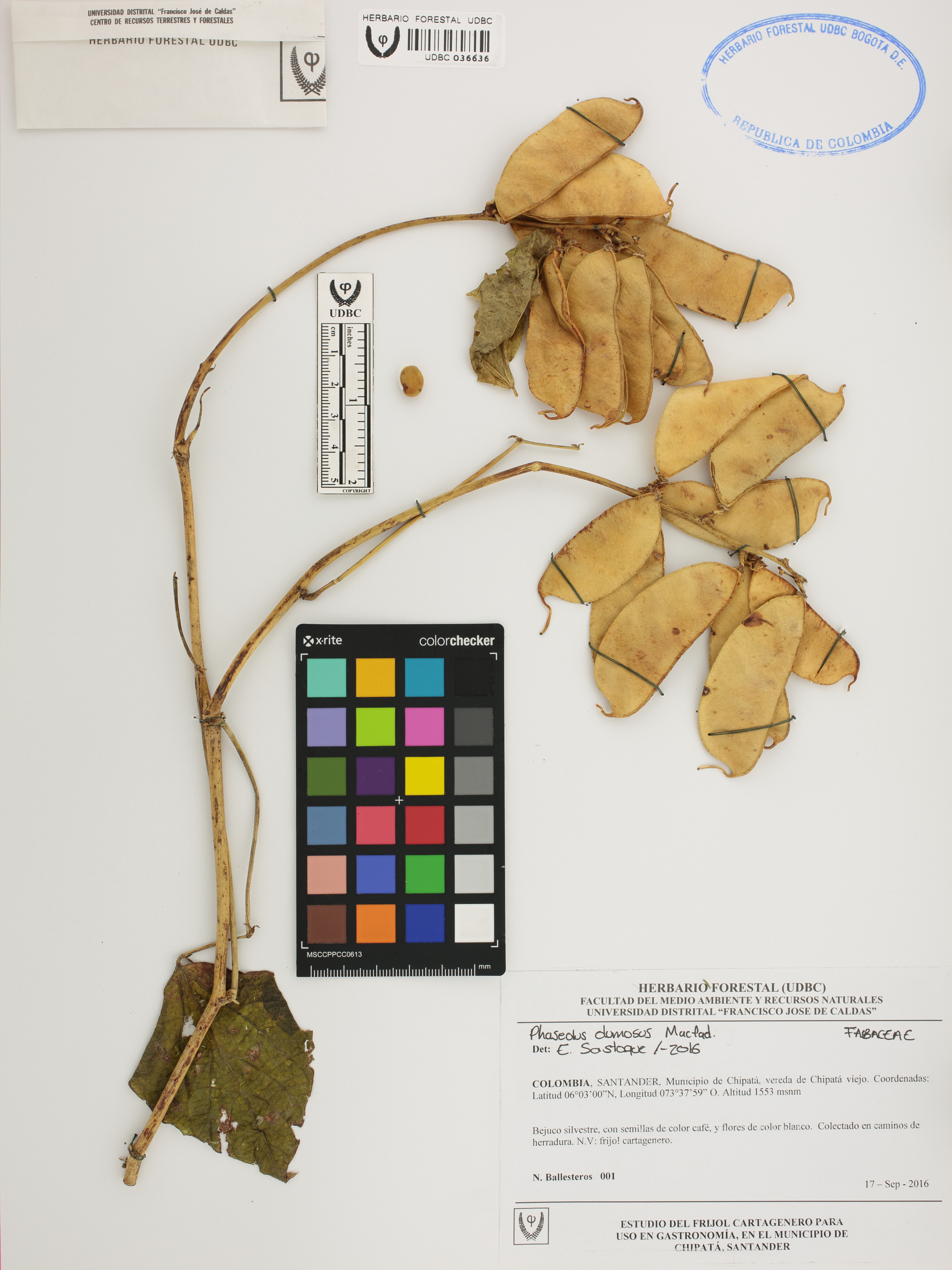 Fotografía del ejemplar Ballesteros, N. 1, determinado como Phaseolus dumosus en el año 2016