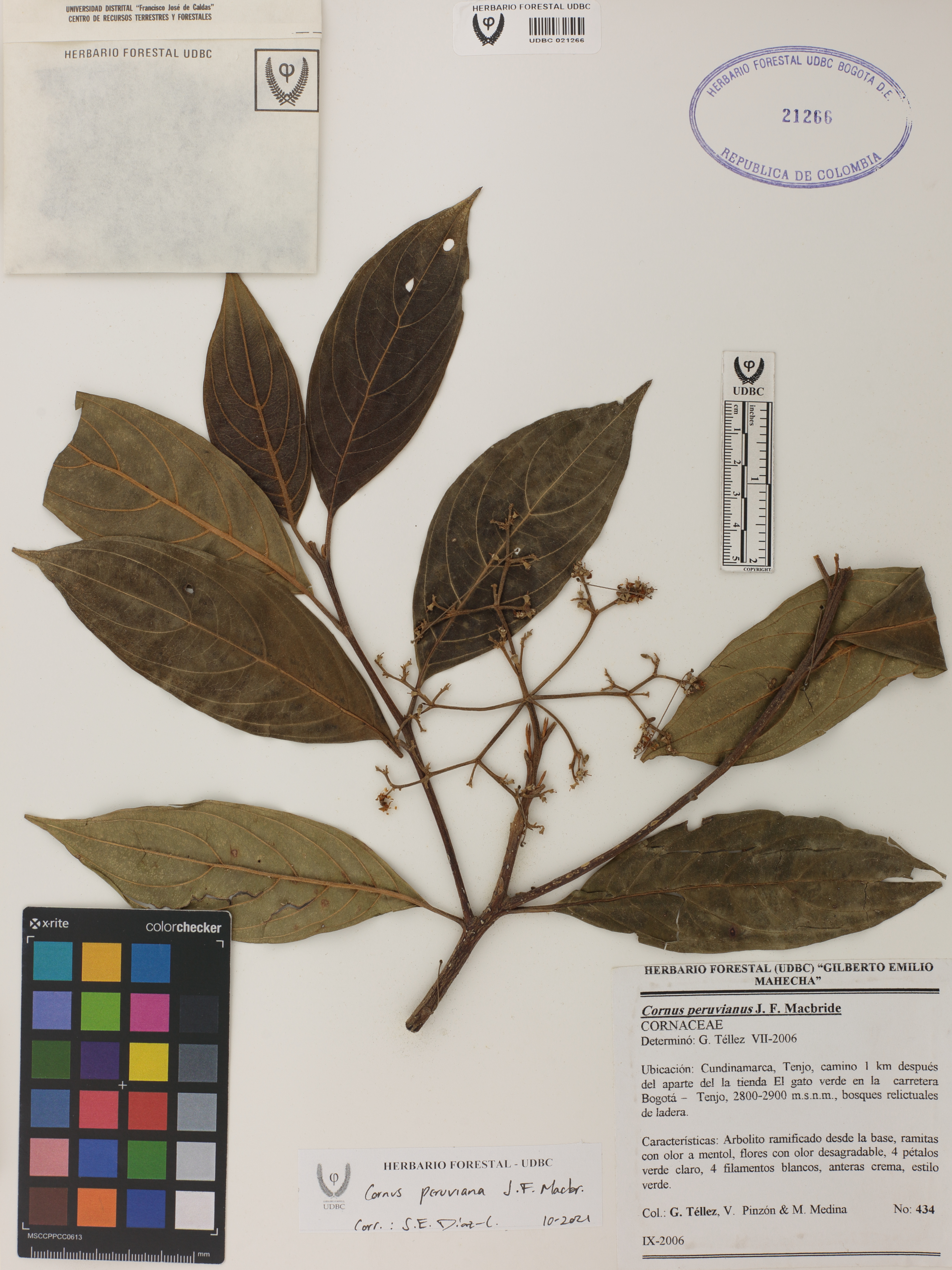 | dc.description | Fotografía del ejemplar Téllez, G. 434, determinado como Cornus peruviana en el año 2006 | |