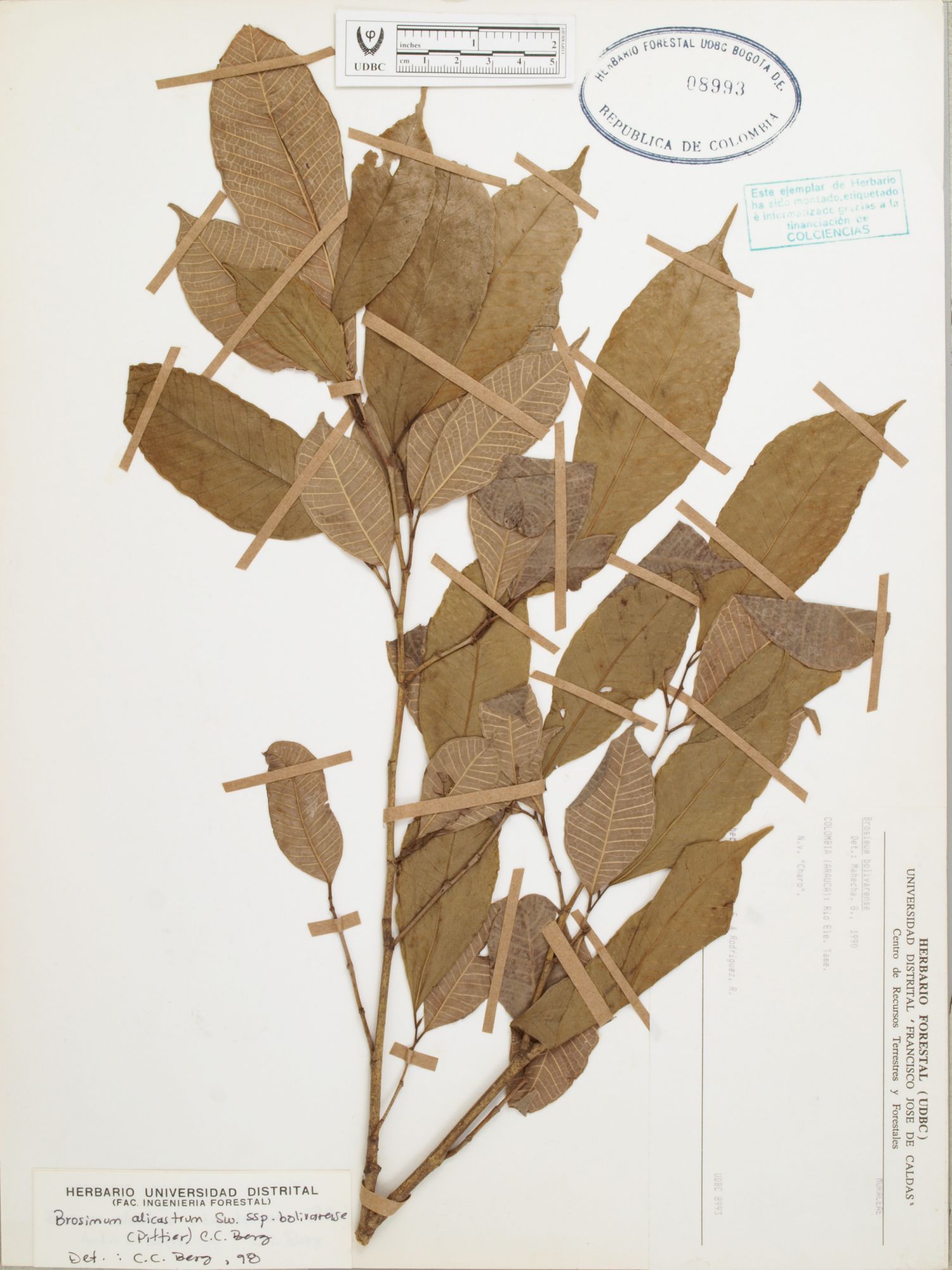 Fotografía del ejemplar Mahecha, G., determinado como Brosimum alicastrum subsp. bolivarense en el año 1998