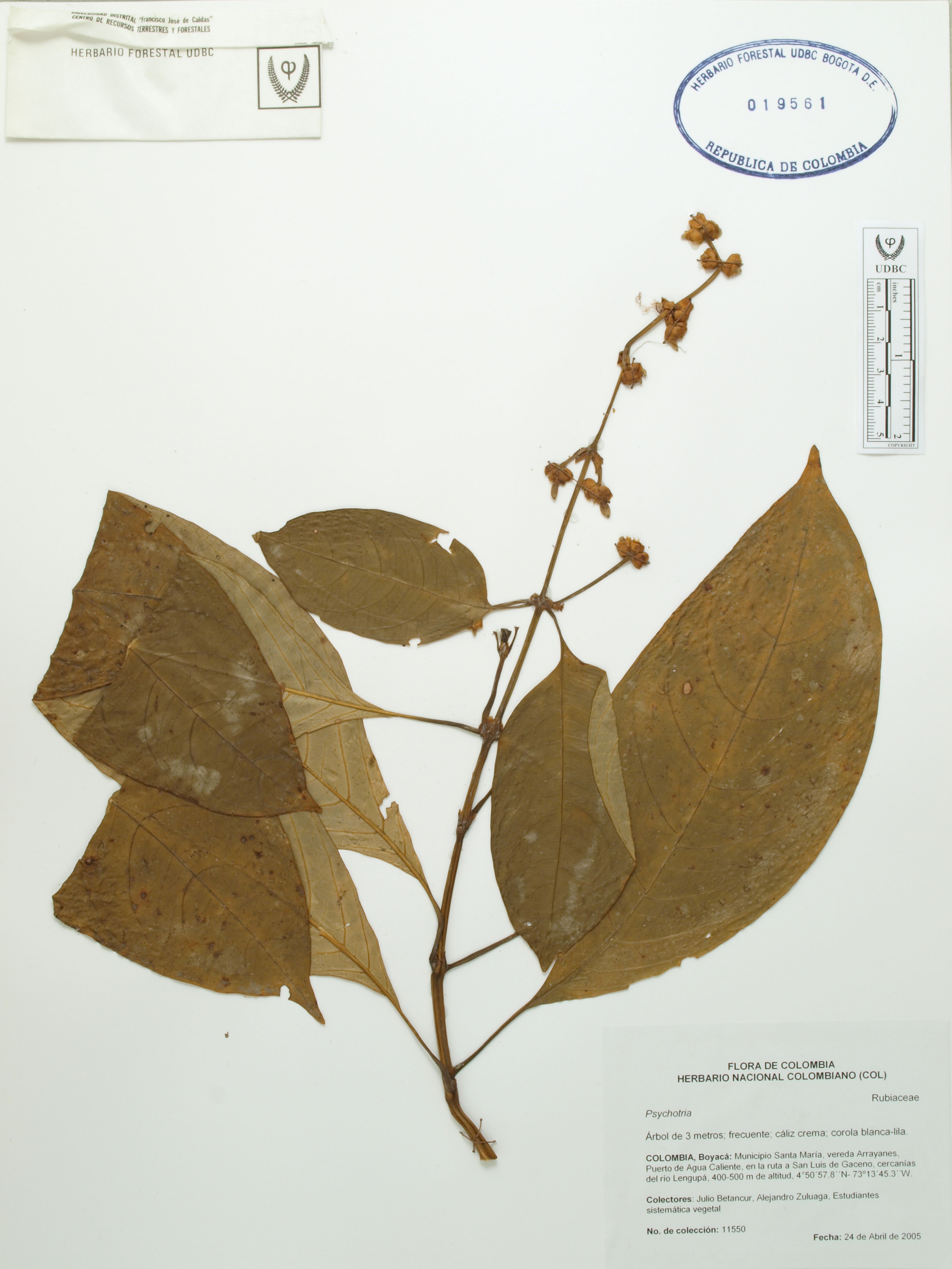 Fotografía del ejemplar Betancur, J. 11550, determinado como Palicourea caerulea en el año 2024