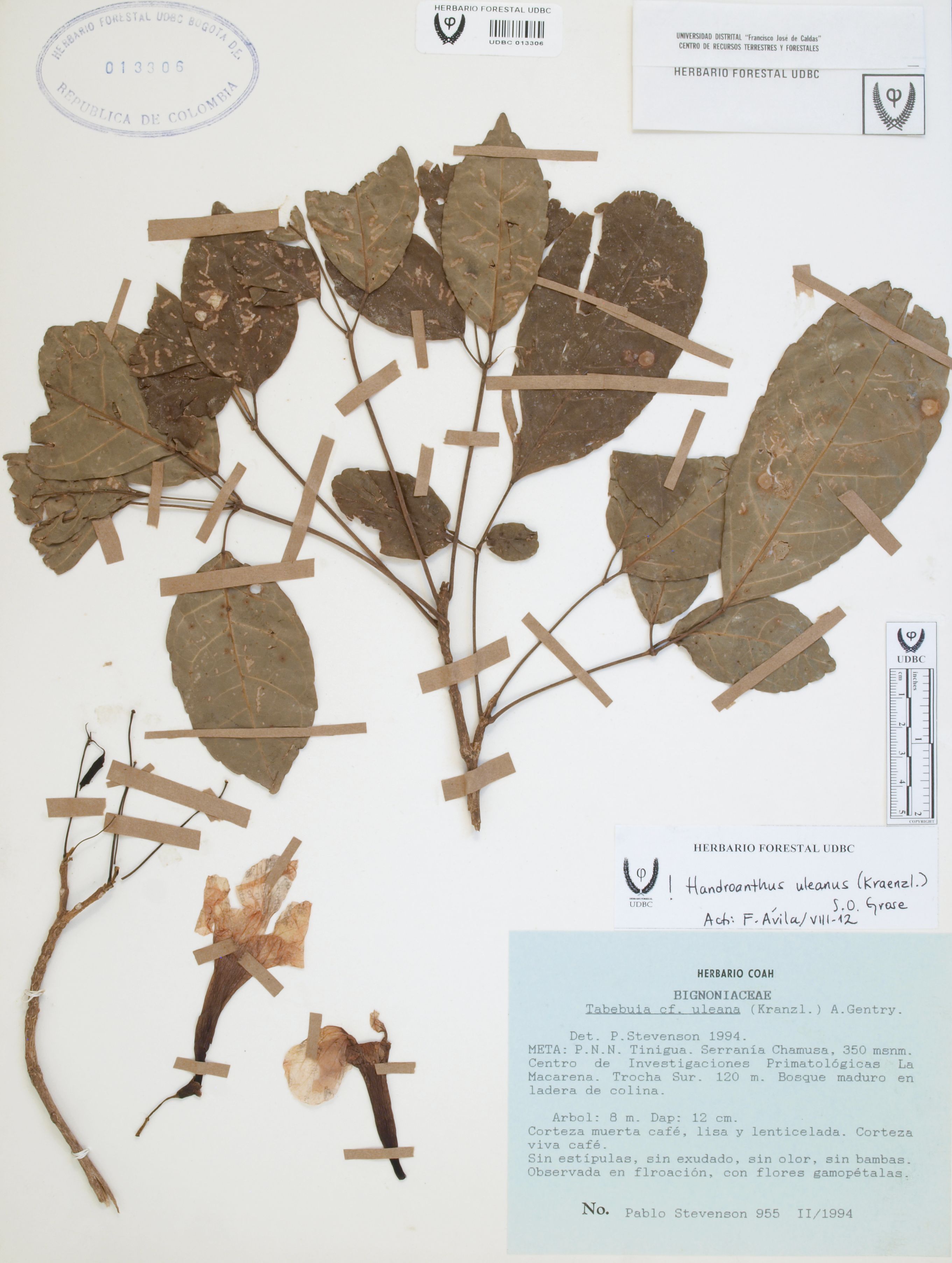 Fotografía del ejemplar Stevenson, P. 955, determinado como Handroanthus uleanus en el año 2012