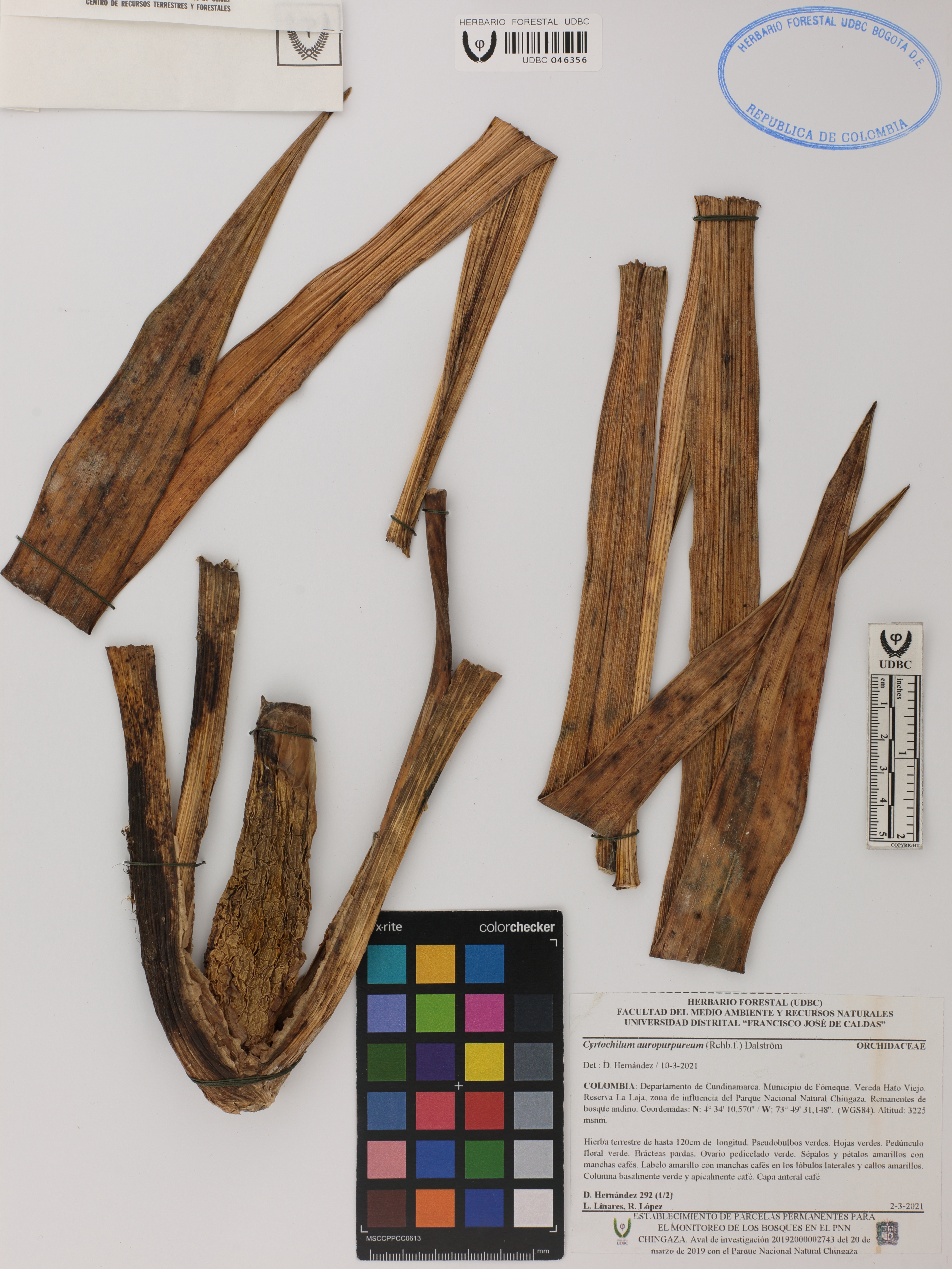 Fotografía del ejemplar Hernández, D. 292, determinado como Cyrtochilum auropurpureum en el año 2021