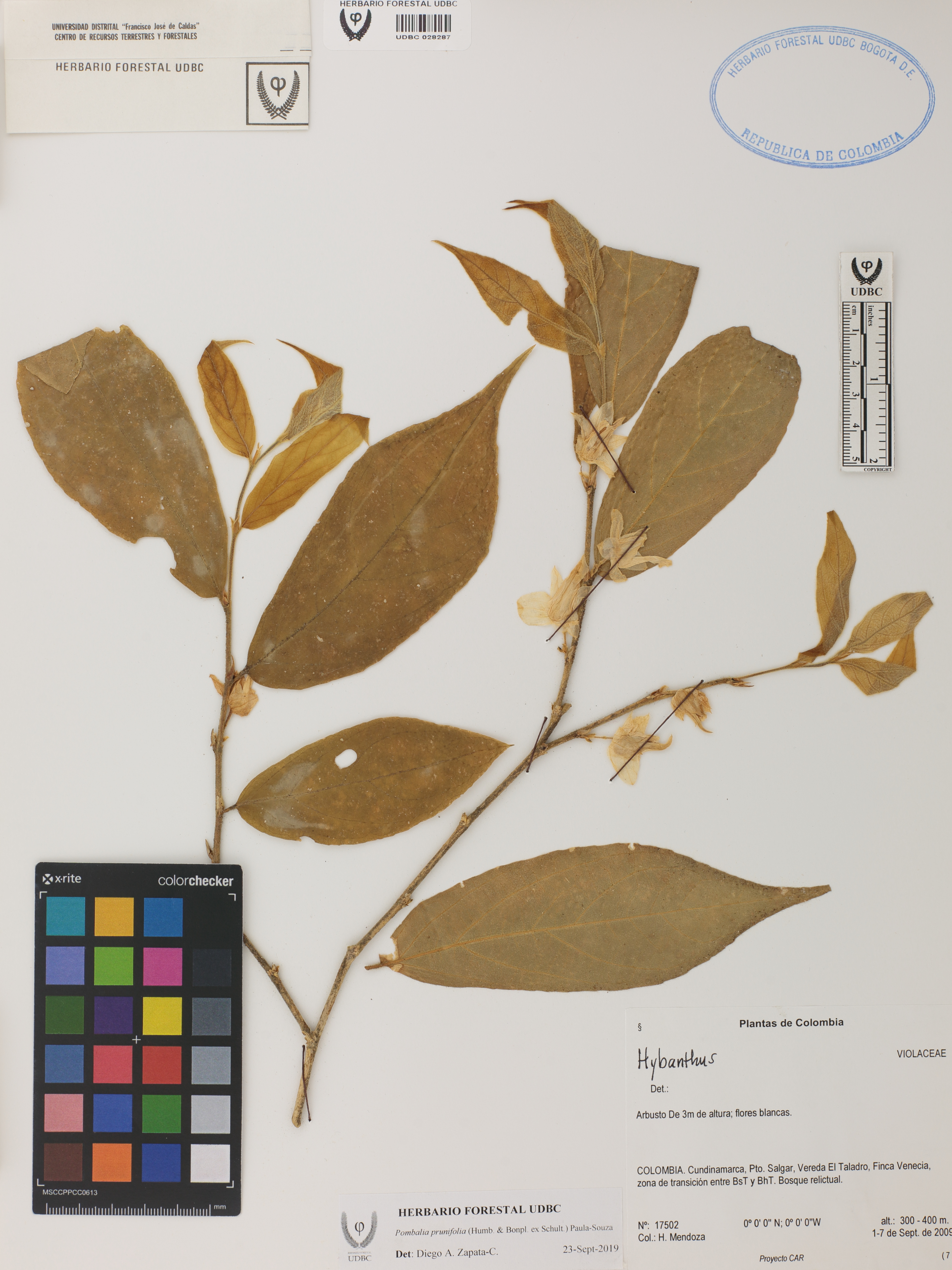 | dc.description | Fotografía del ejemplar Mendoza, H. 17502, determinado como Pombalia prunifolia en el año 2019 | |