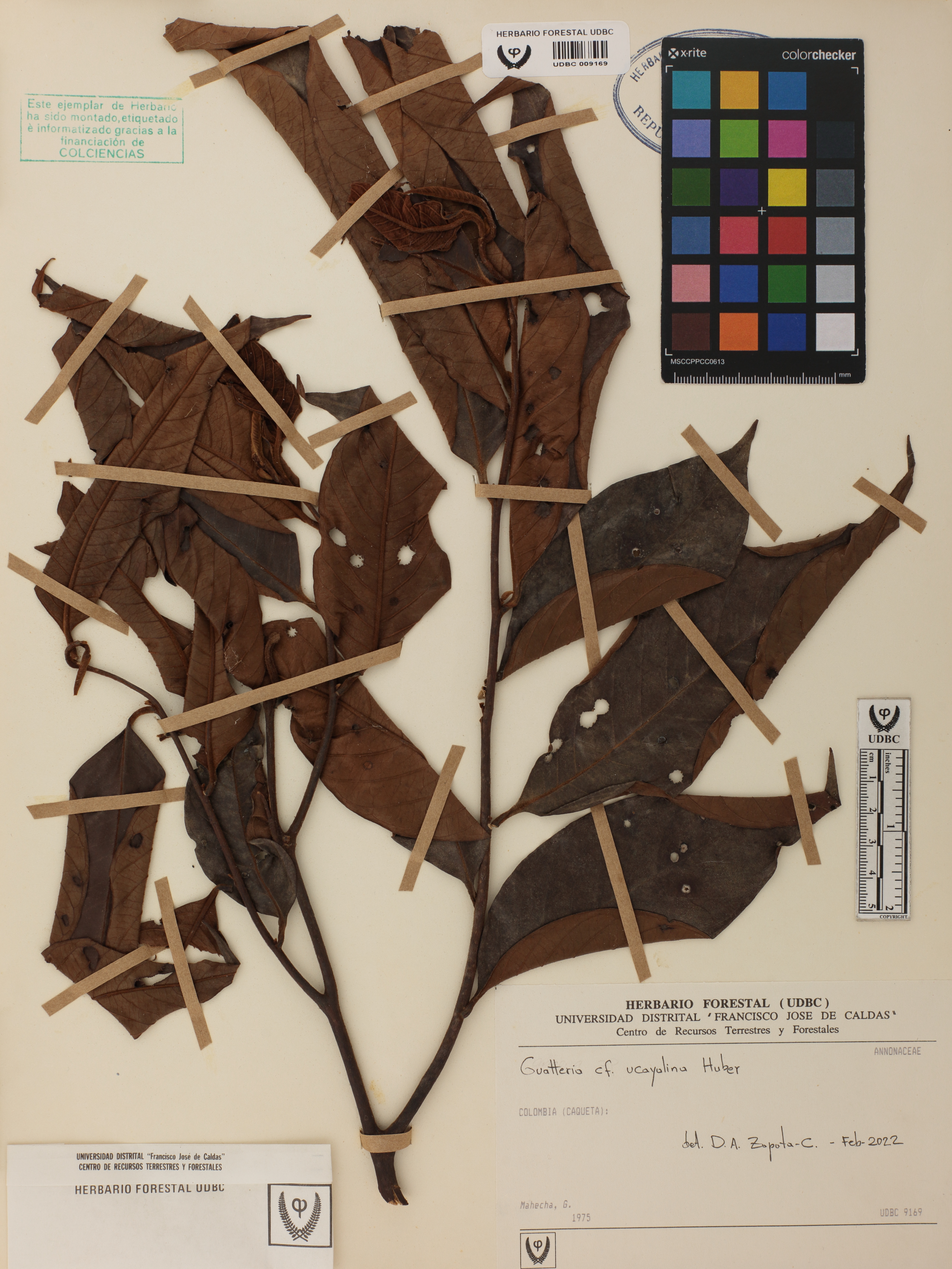 Fotografía del ejemplar Mahecha, G., determinado como Guatteria ucayalina en el año 2022