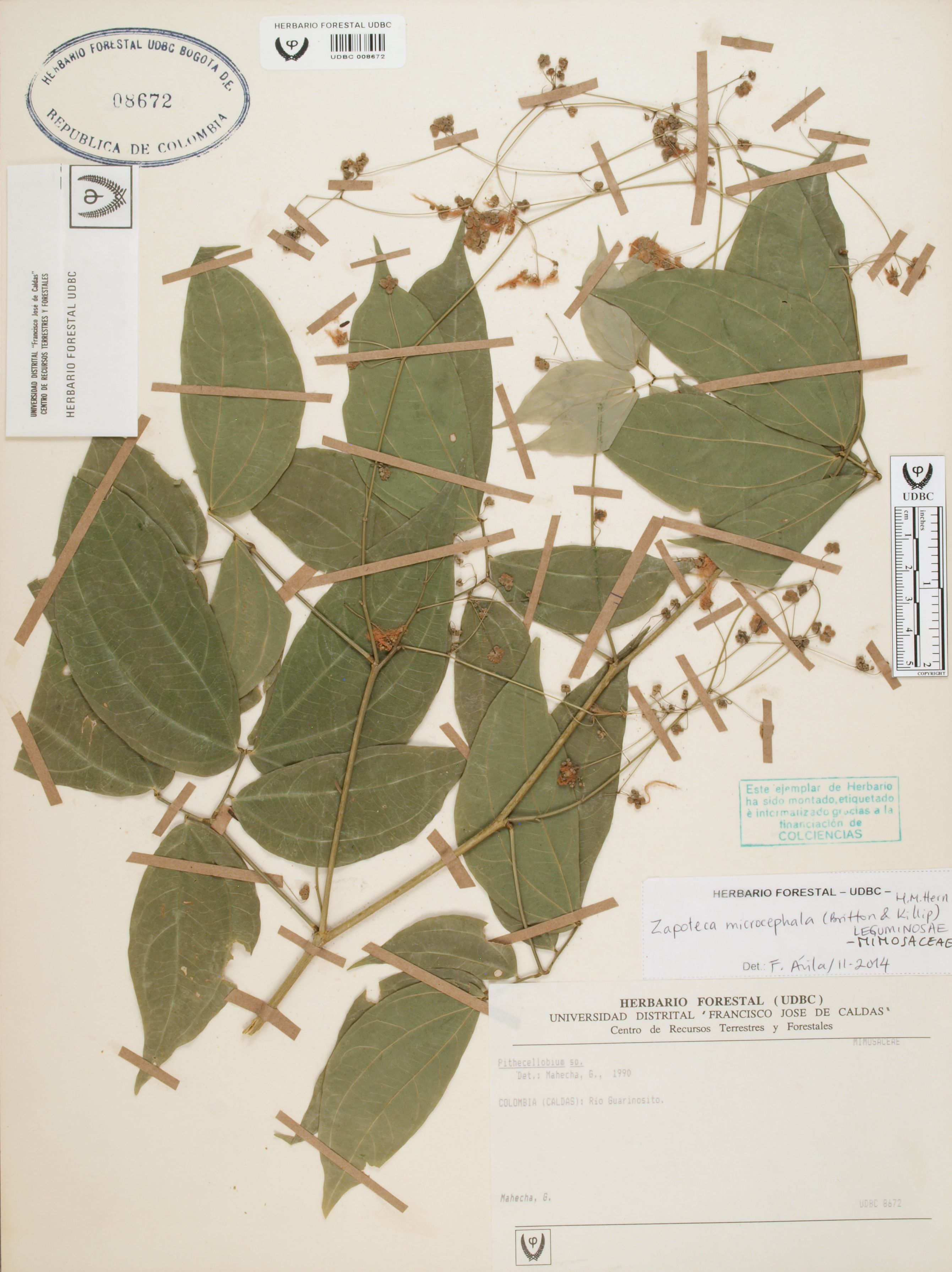 Fotografía del ejemplar Mahecha, G., determinado como Zapoteca microcephala en el año 2014
