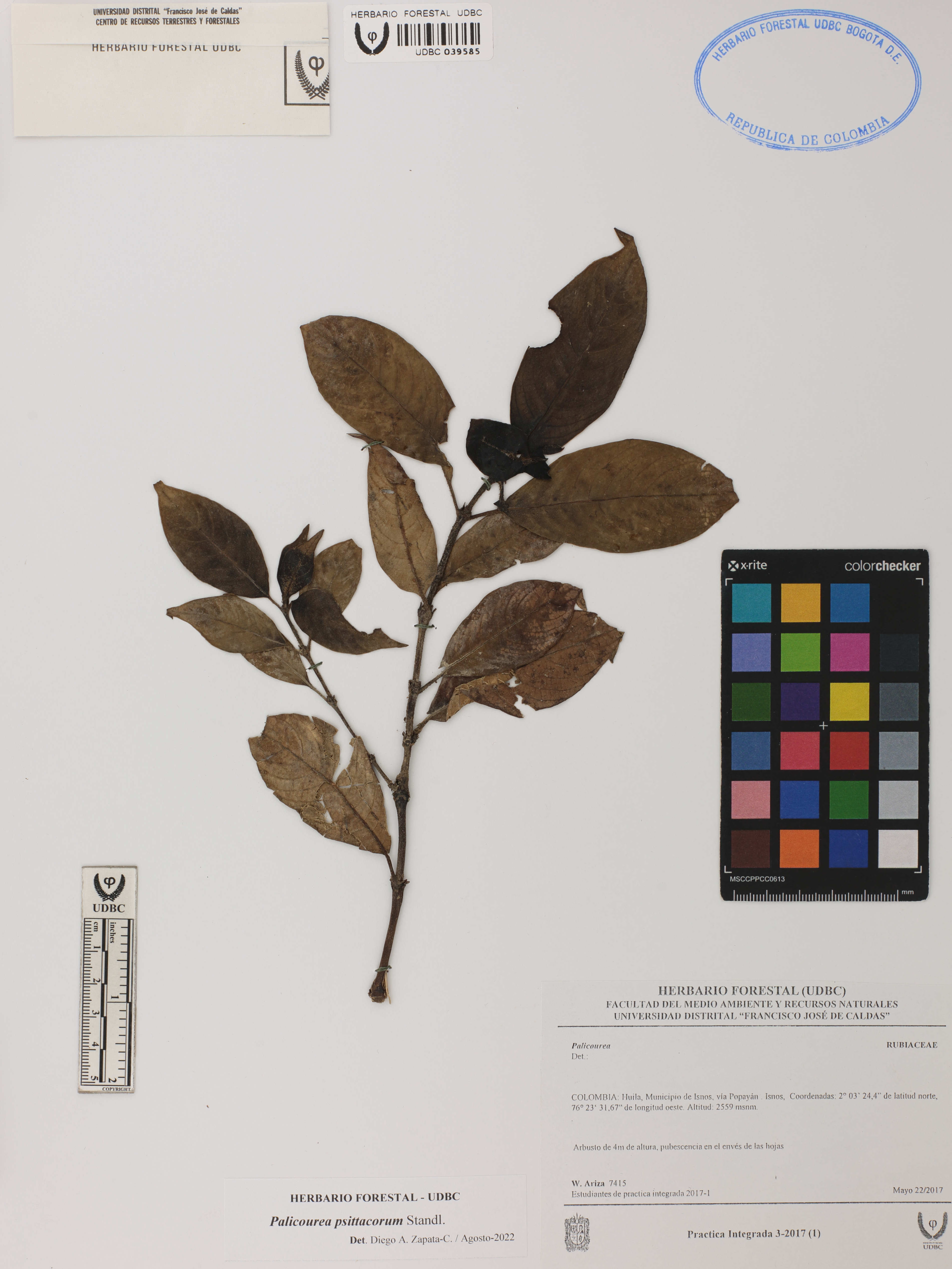 Fotografía del ejemplar Ariza, W. 7415, determinado como Palicourea psittacorum en el año 2022