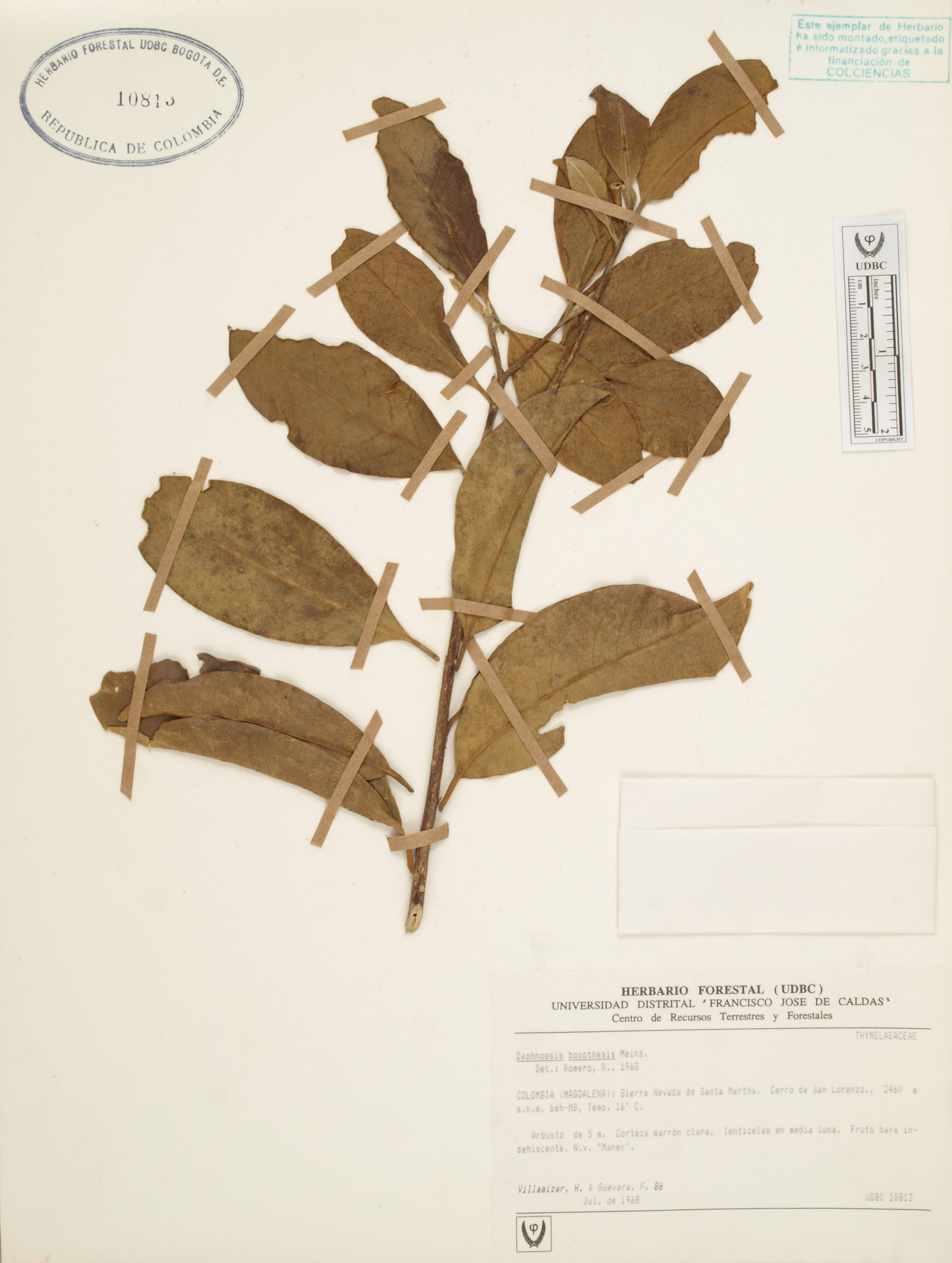 Fotografía del ejemplar Villamizar, H. 86, determinado como Daphnopsis caracasana en el año 2018