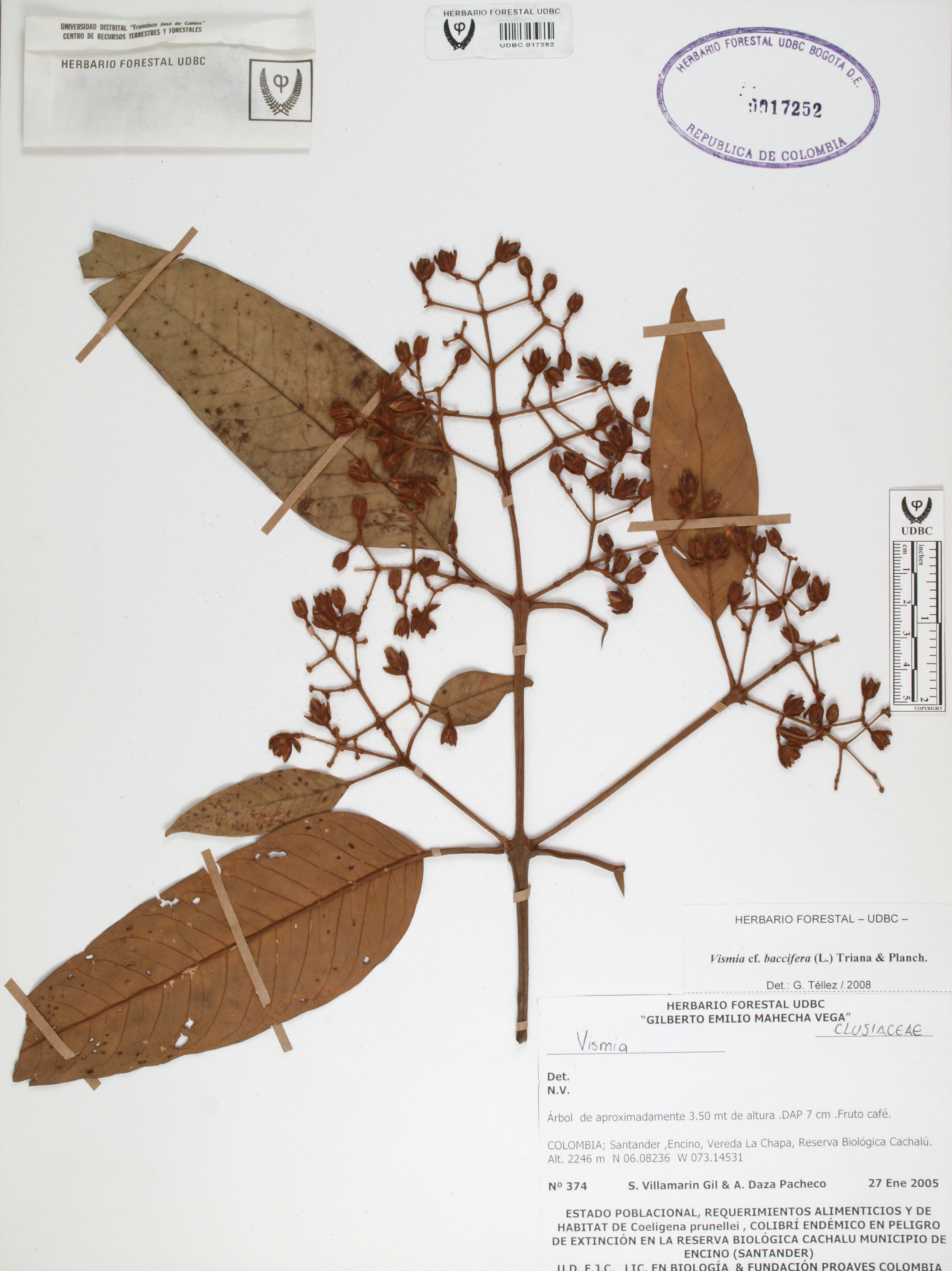 Fotografía del ejemplar Villamarín, S. 374, determinado como Vismia baccifera en el año 2008