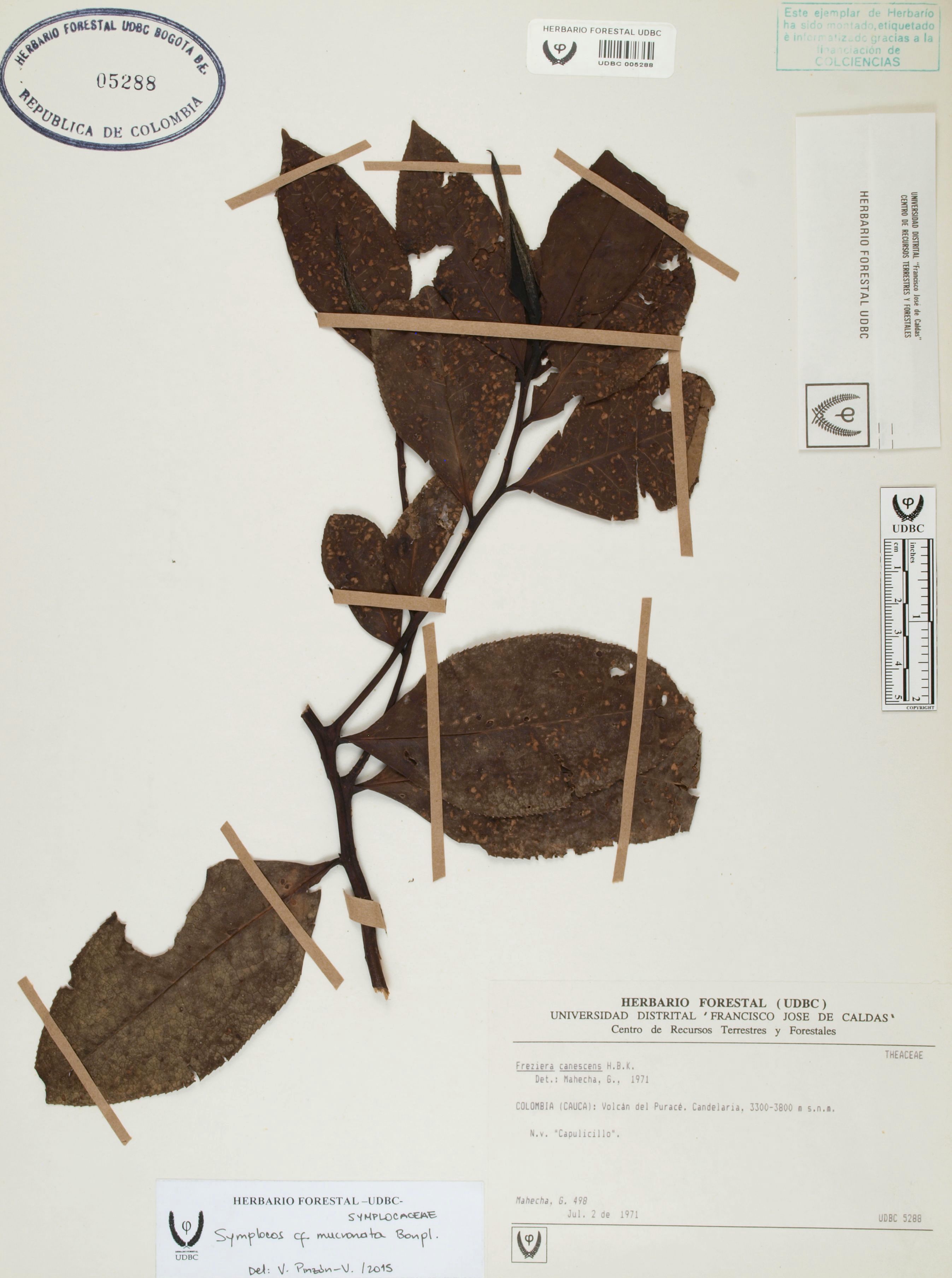 Fotografía del ejemplar Mahecha, G. 498, determinado como Symplocos mucronata en el año 2015