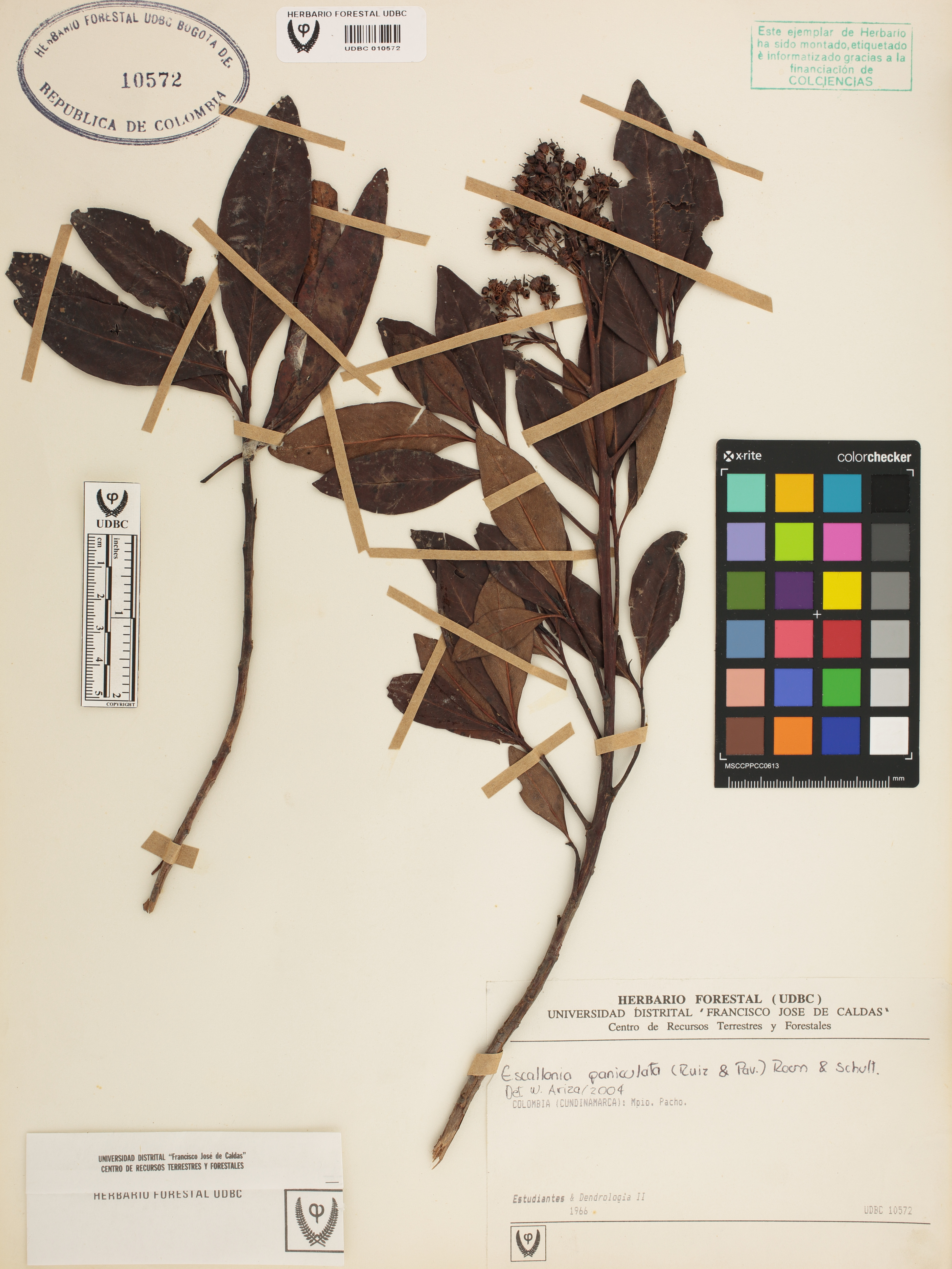 Fotografía del ejemplar Estudiantes Dendrología II (1996),, determinado como Escallonia paniculata en el año 2004