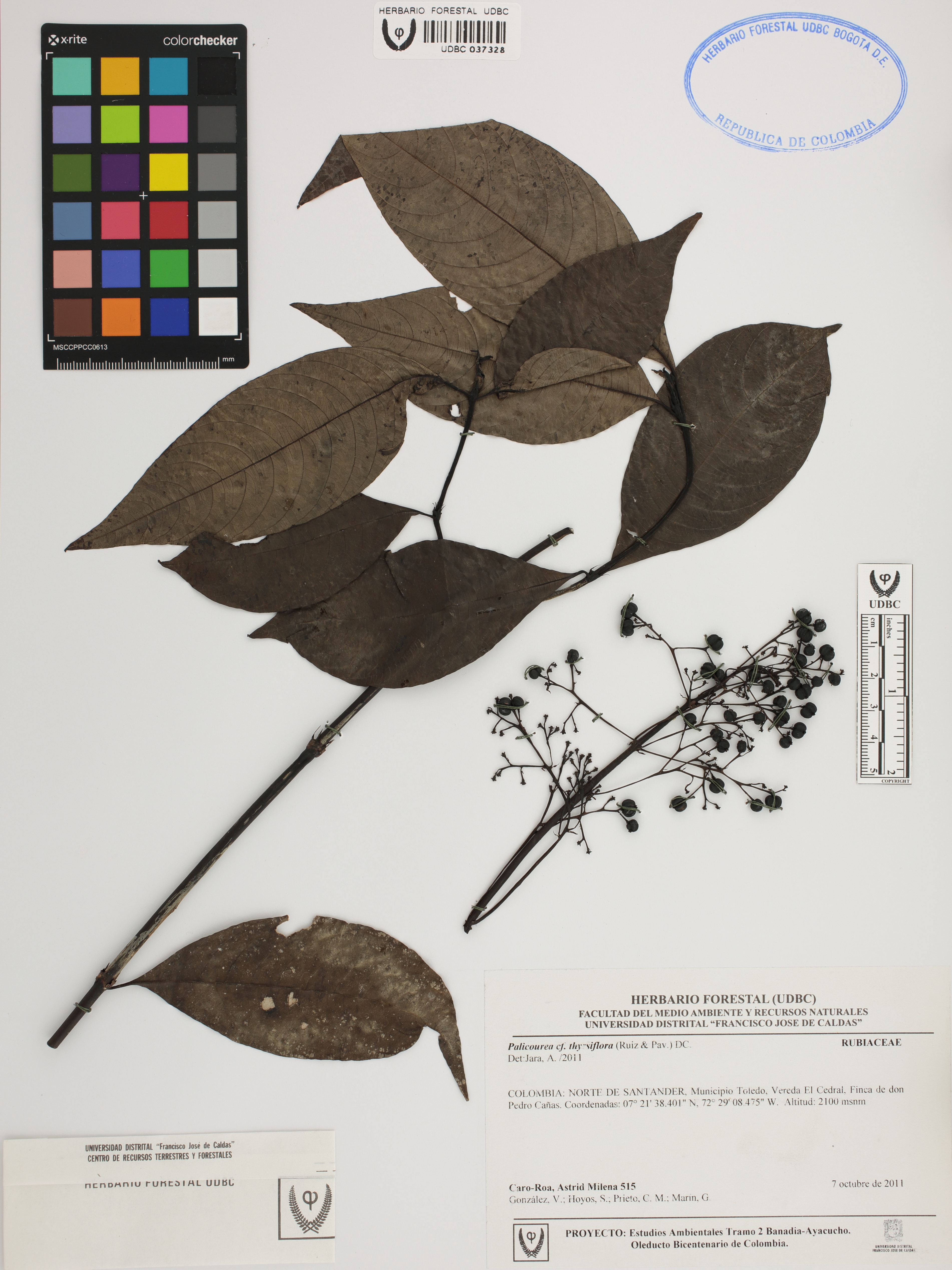 Fotografía del ejemplar Caro-Roa, A. 515, determinado como Palicourea thyrsiflora en el año 2011