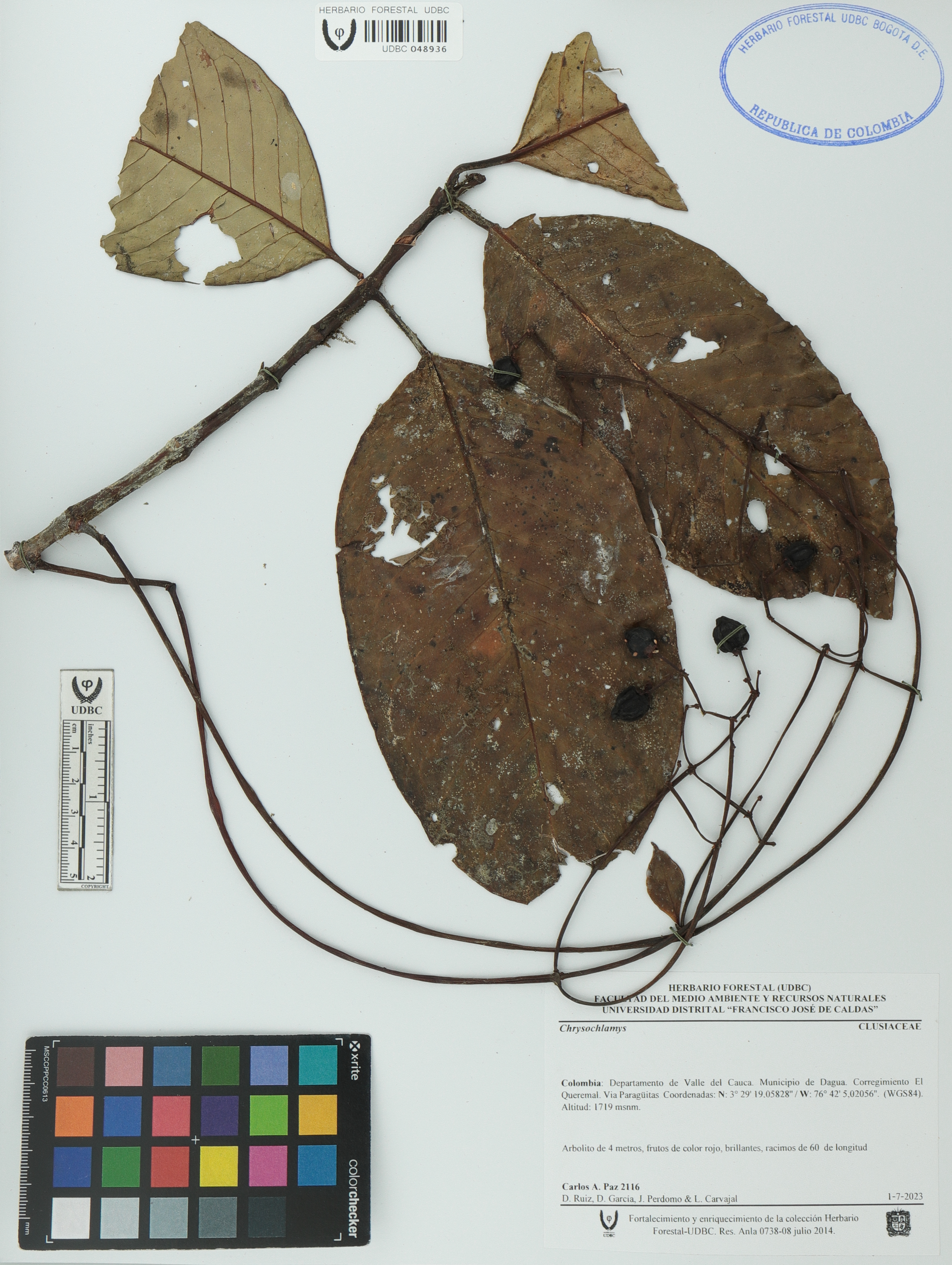 Fotografía del ejemplar Paz, Carlos A. 2116, determinado como Chrysochlamys sp.