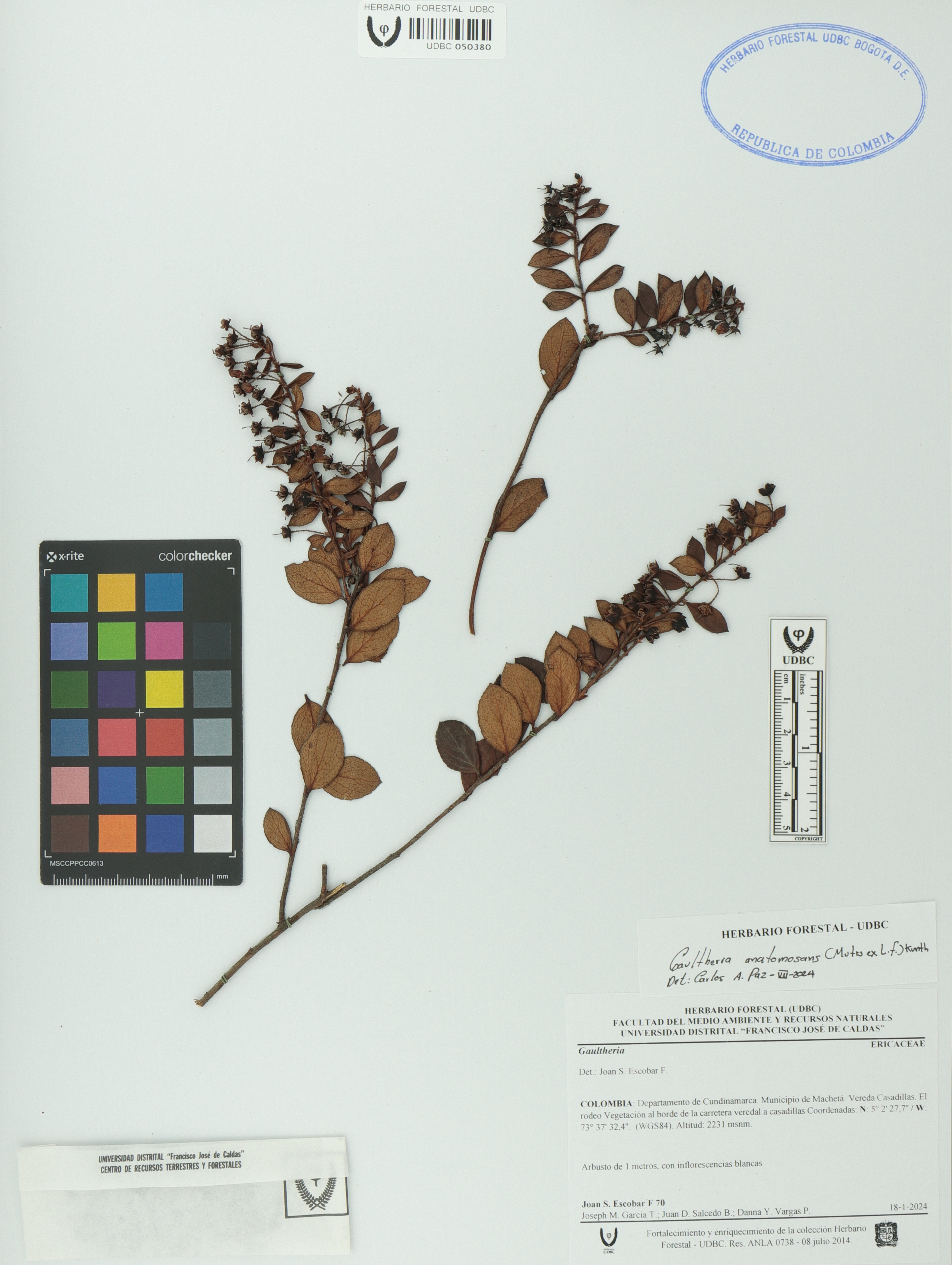 | dc.description | Fotografía del ejemplar Escobar, J. 70, determinado como Gaultheria anastomosans en el año 2024 | |