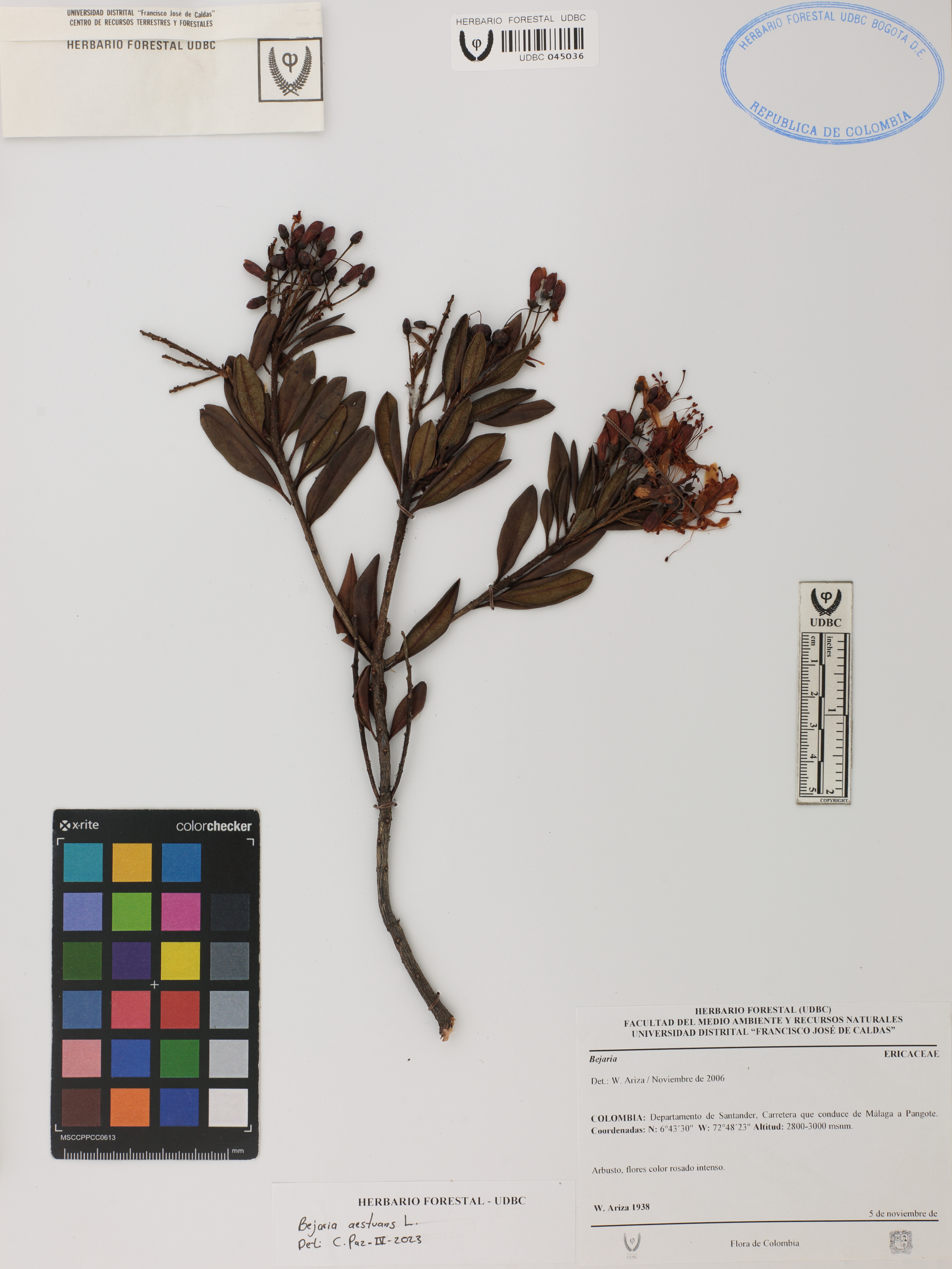 Fotografía del ejemplar Ariza-Cortés, W. 1938, determinado como Bejaria aestuans en el año 2023