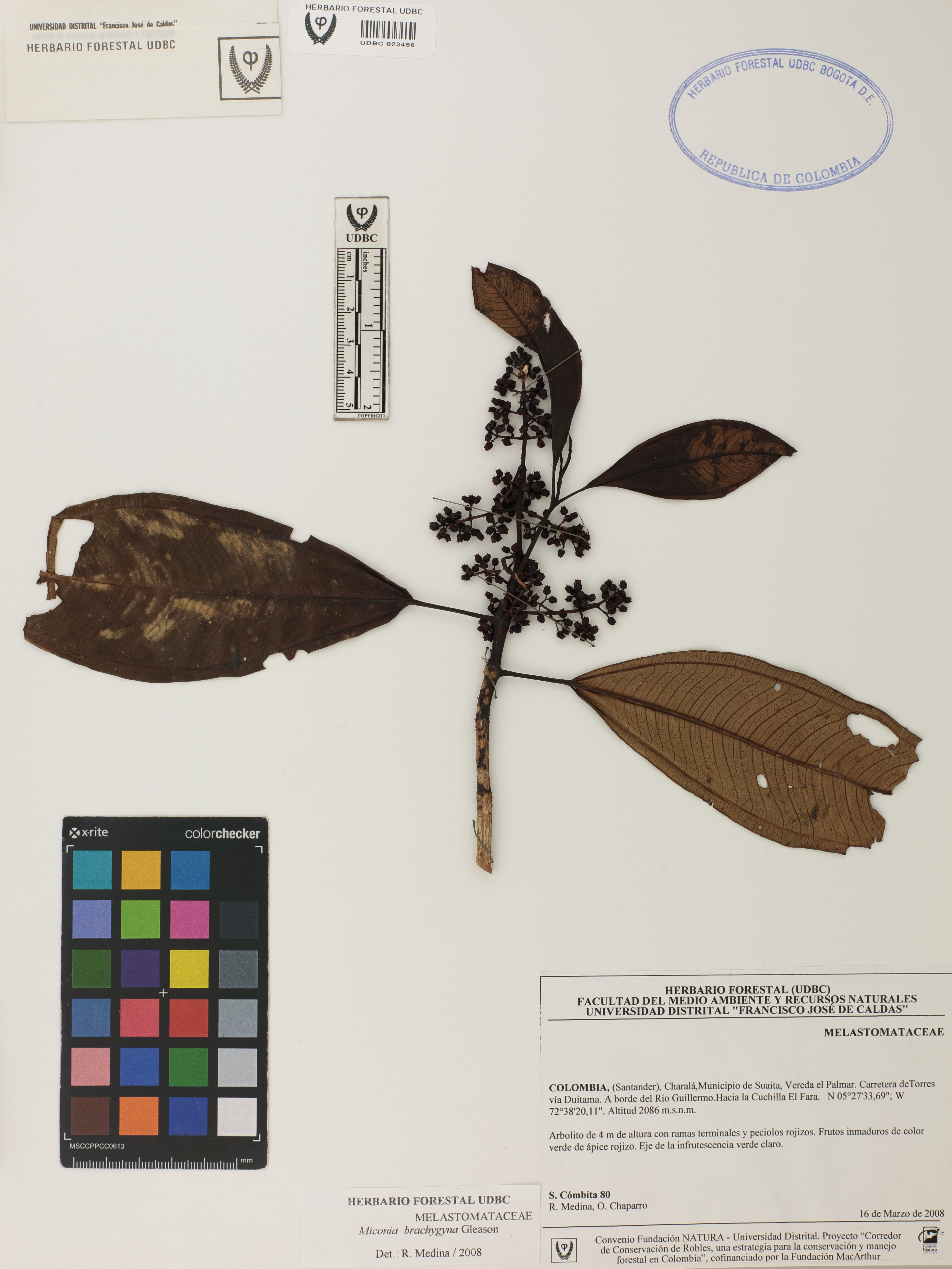 Fotografía del ejemplar Cómbita, S. 80, determinado como Miconia brachygyna en el año 2008