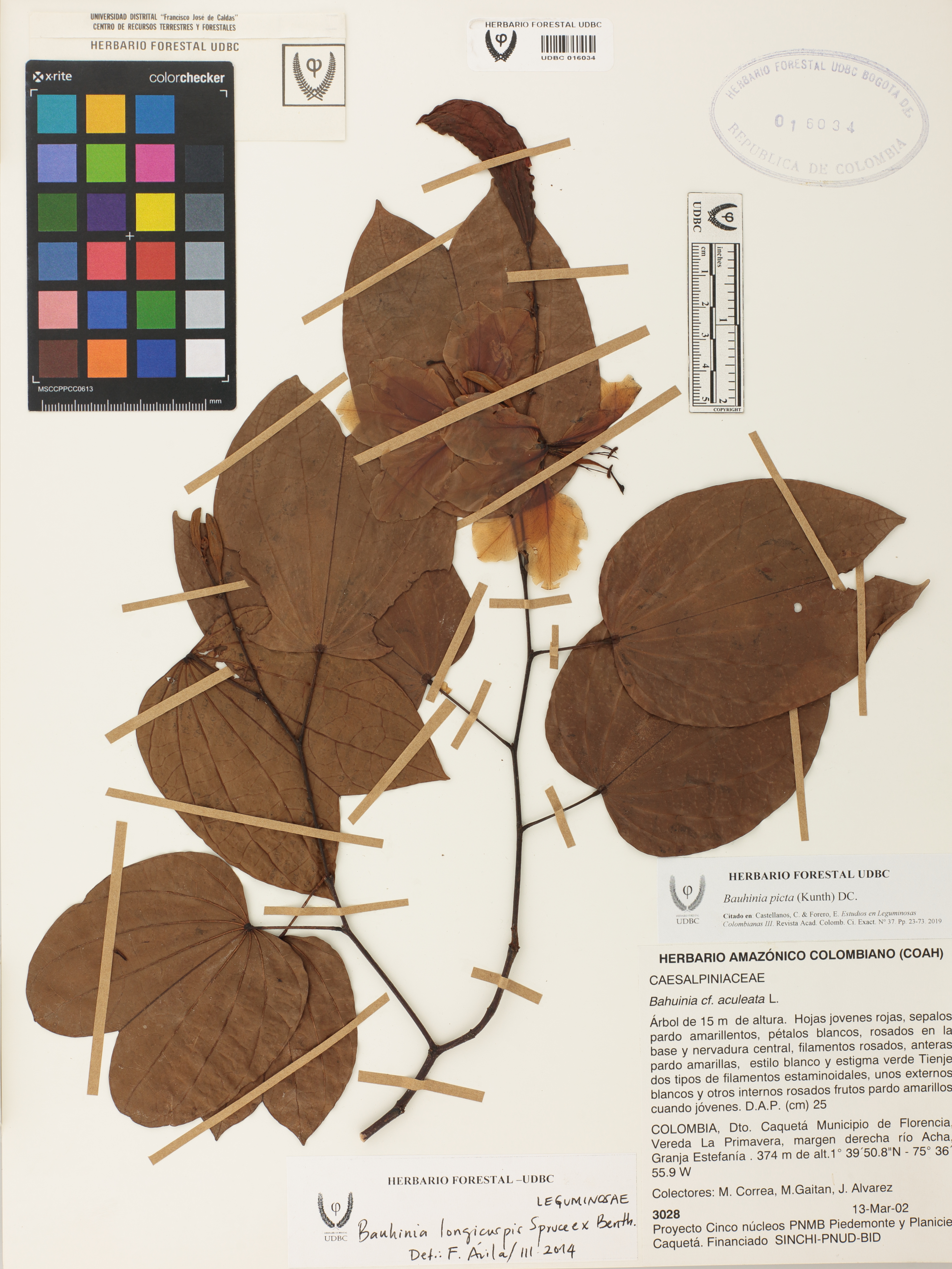 Fotografía del ejemplar Correa, M. 3028, determinado como Bauhinia picta en el año 2014