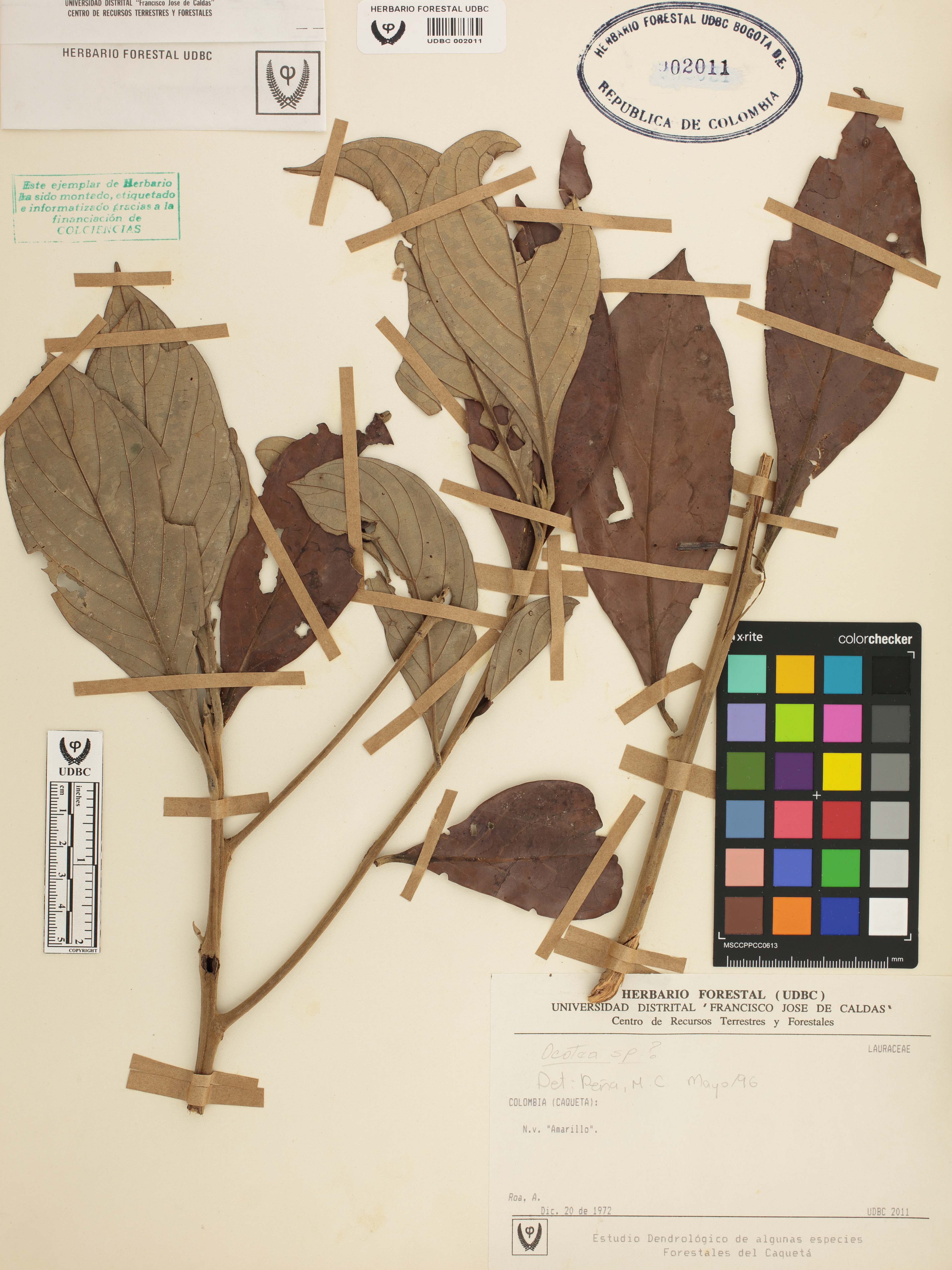 Fotografía del ejemplar Roa, A., determinado como Ocotea argyrophylla en el año 2022