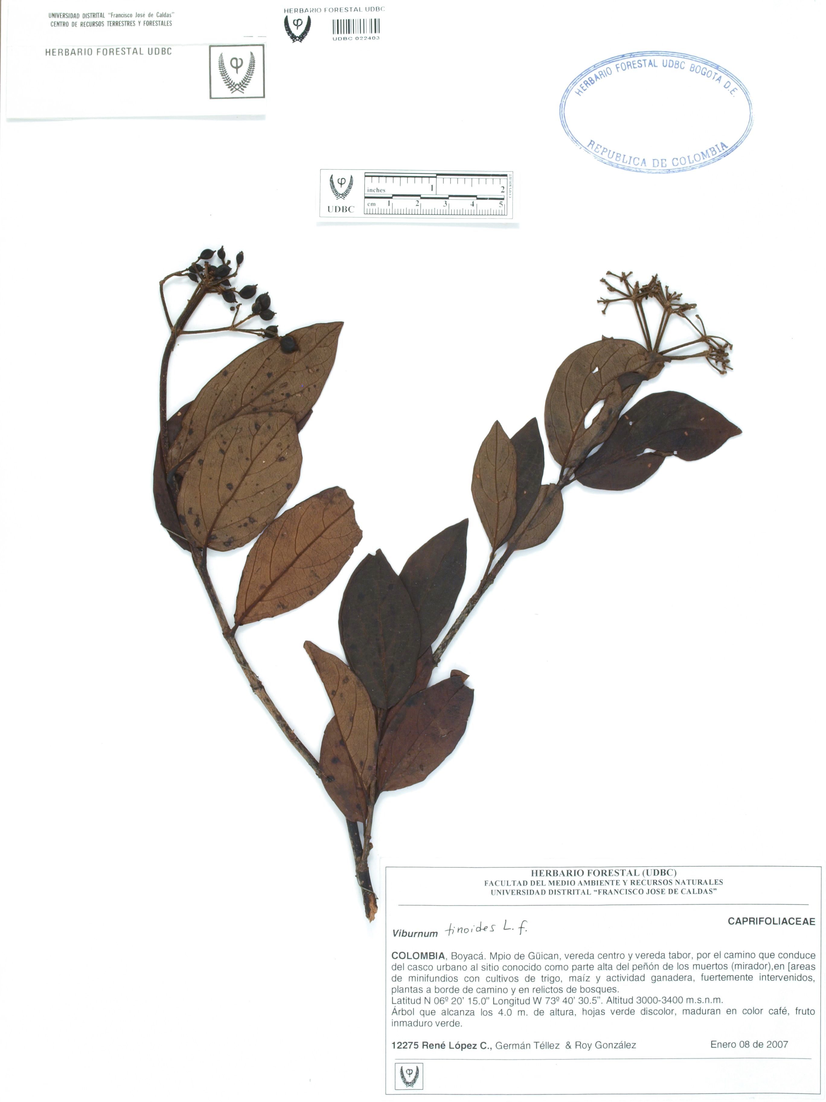 Fotografía del ejemplar López, R. 12275, determinado como Viburnum tinoides en el año 2011