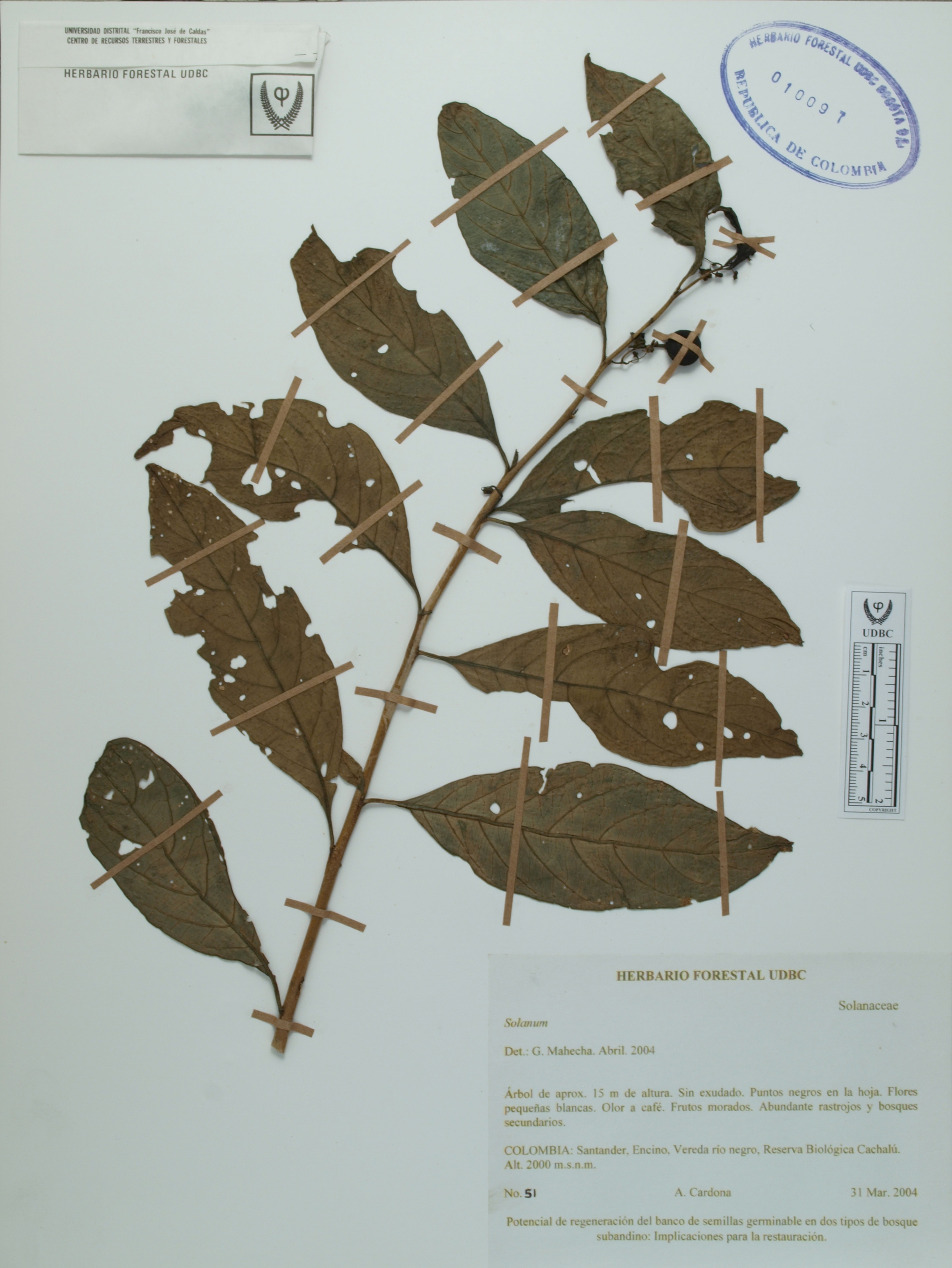 Fotografía del ejemplar Cardona, A. 51, determinado como Solanum sp. en el año 2004