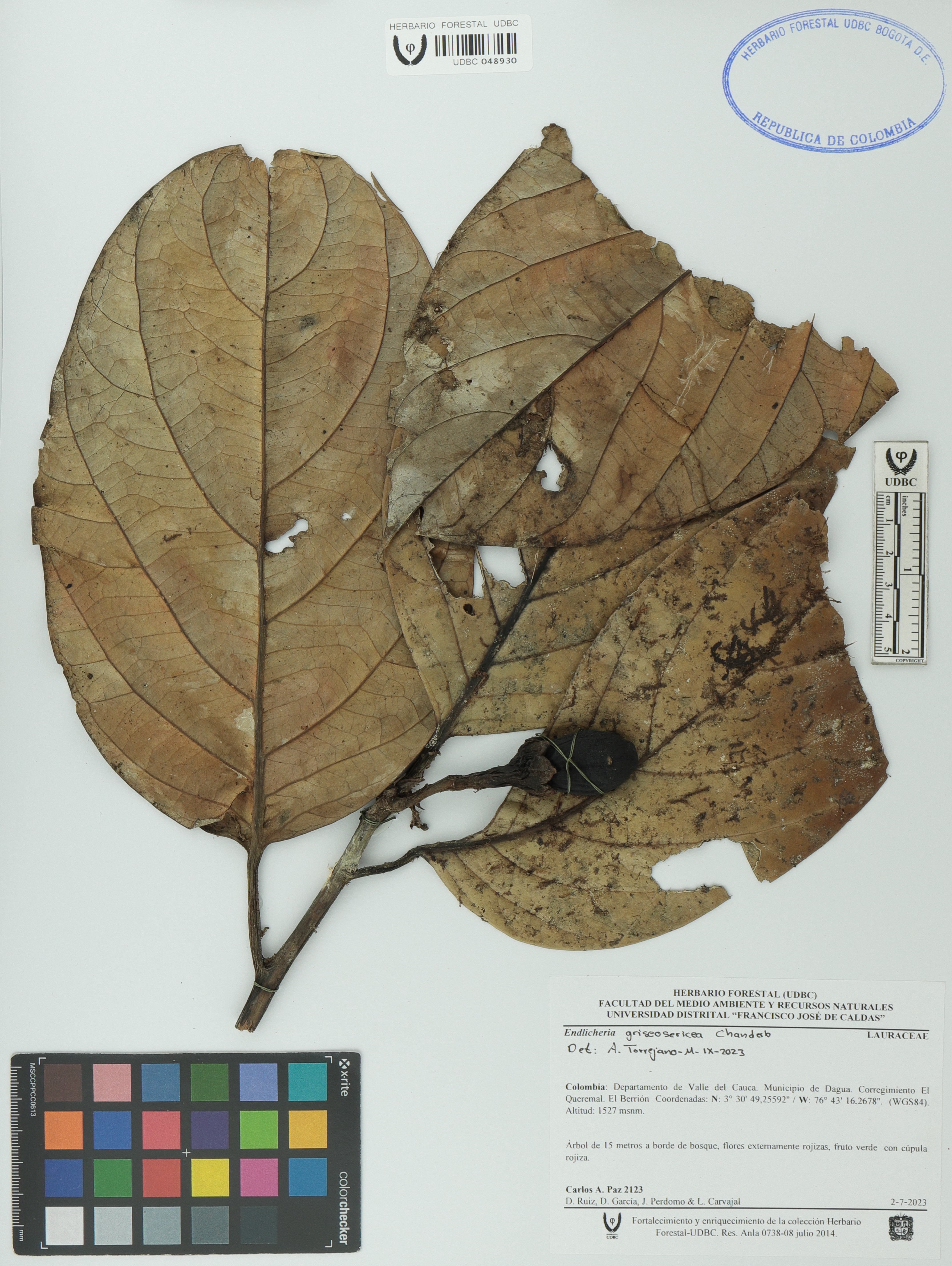 Fotografía del ejemplar Paz, Carlos A. 2123, determinado como Endlicheria griseosericea en el año 2023