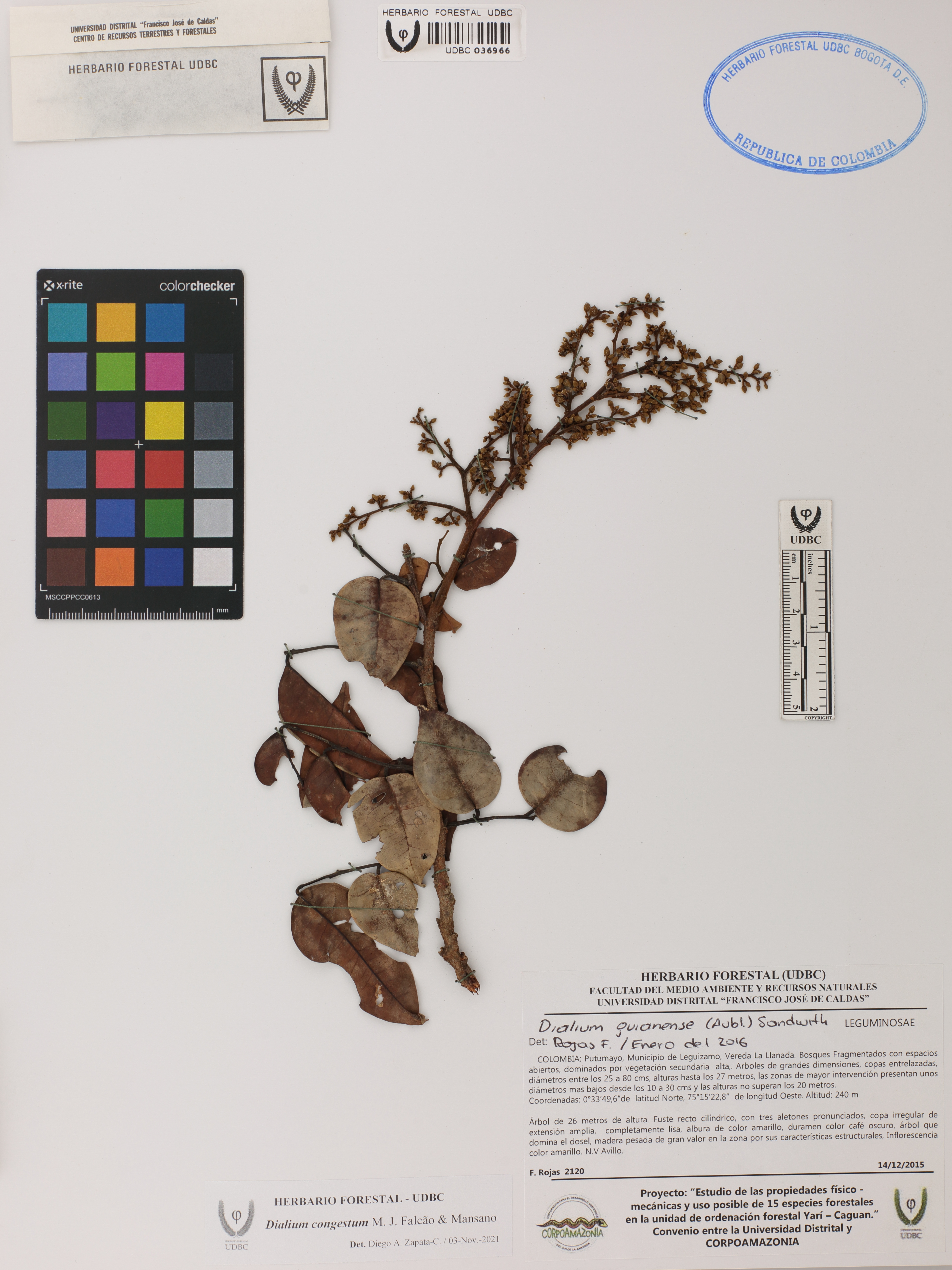 | dc.description | Fotografía del ejemplar Rojas, F. 2120, determinado como Dialium congestum en el año 2021 | |