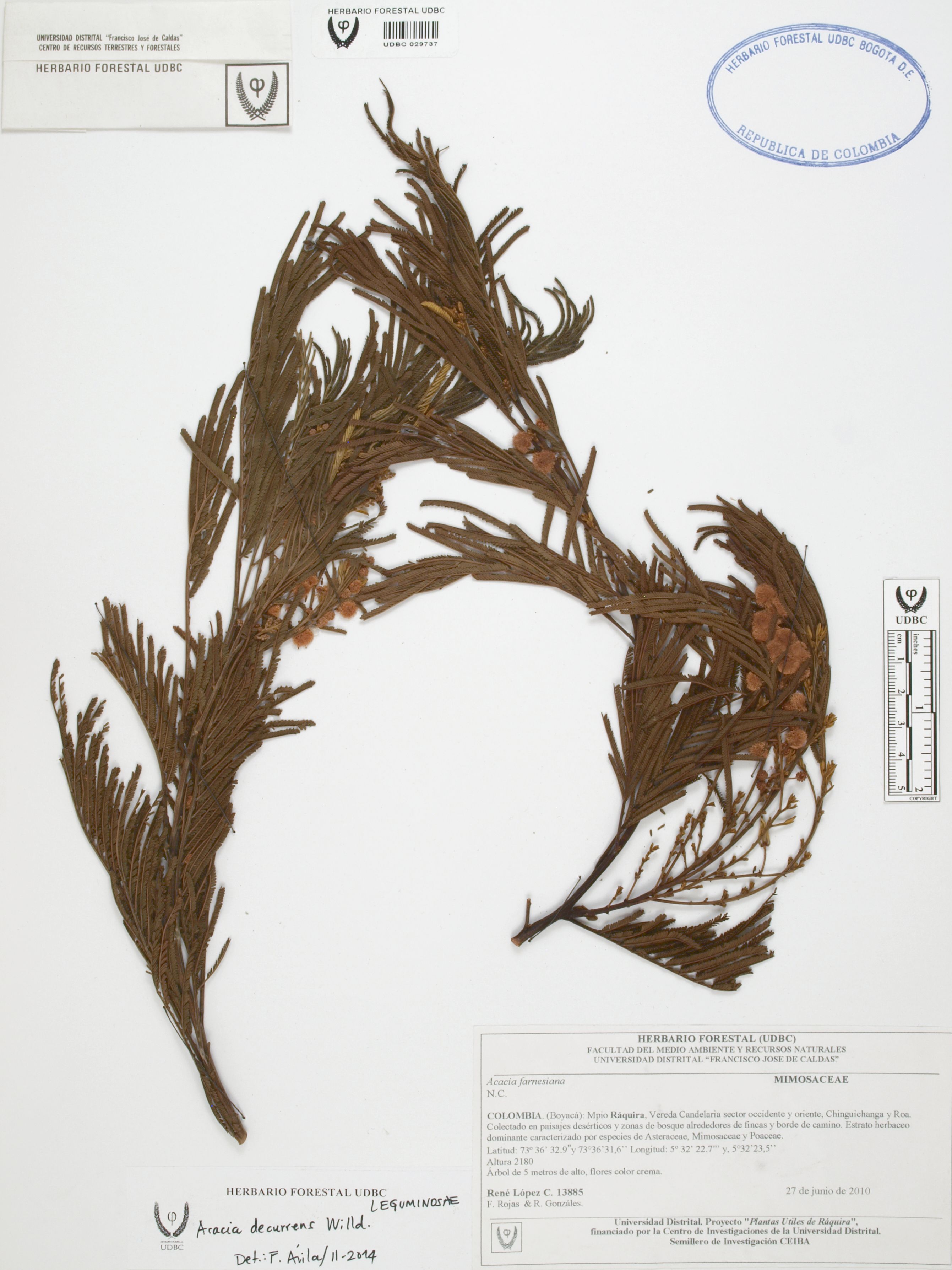 Fotografía del ejemplar López, R. 13885, determinado como Acacia decurrens en el año 2014
