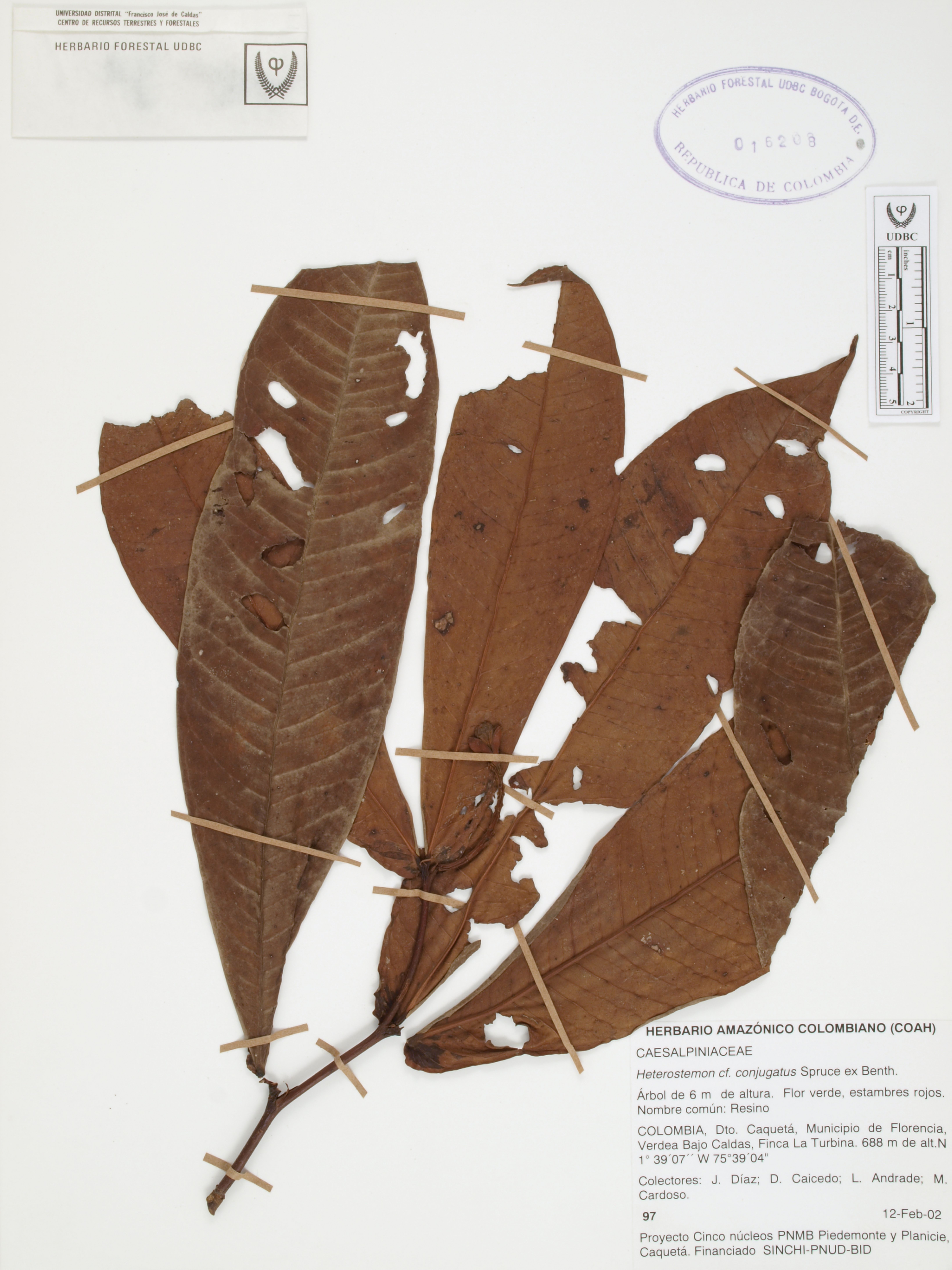 Fotografía del ejemplar Díaz, J. 97, determinado como Heterostemon conjugatus