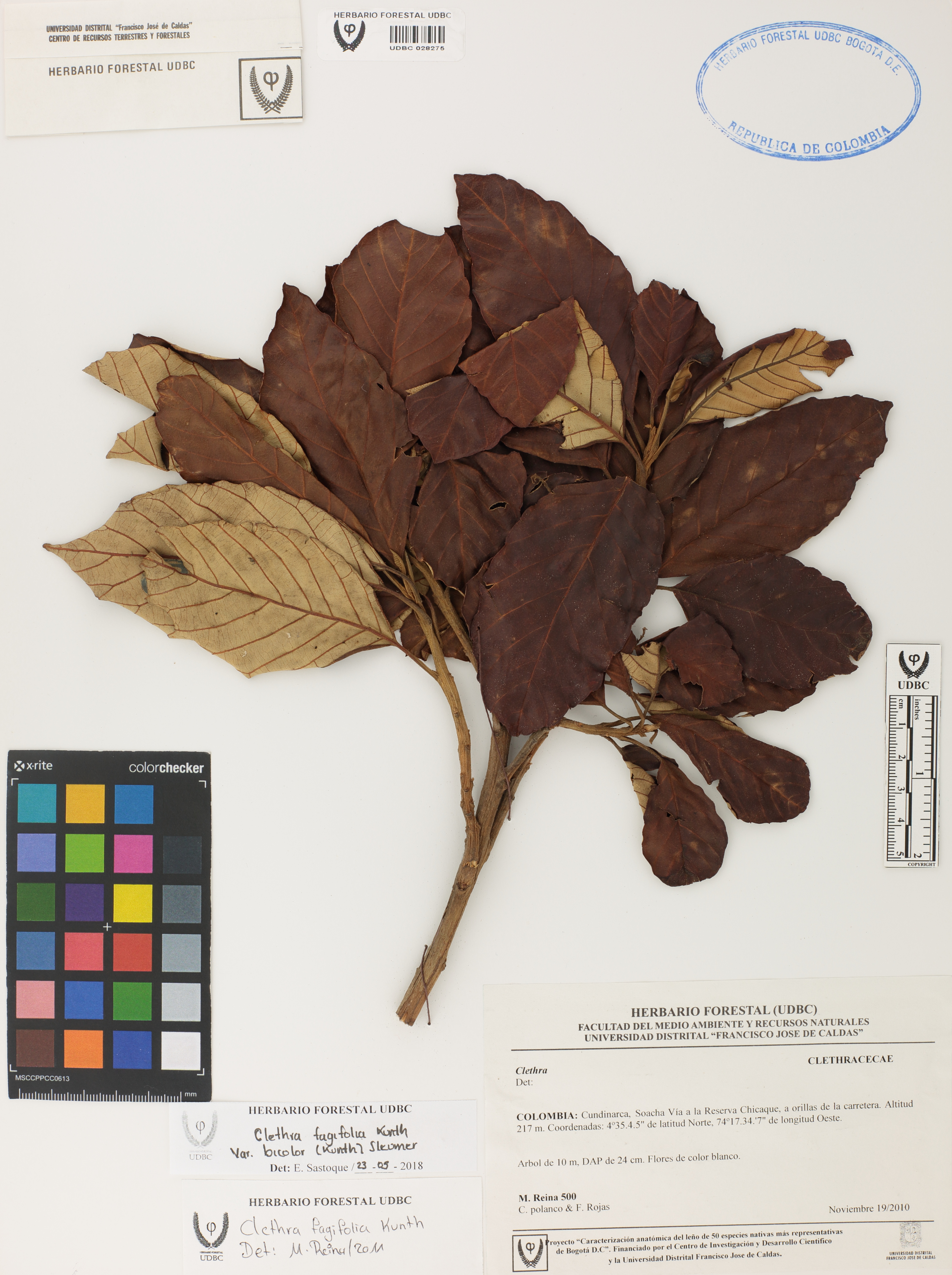 Fotografía del ejemplar Reina, M. 500, determinado como Clethra fagifolia var. bicolor en el año 2018