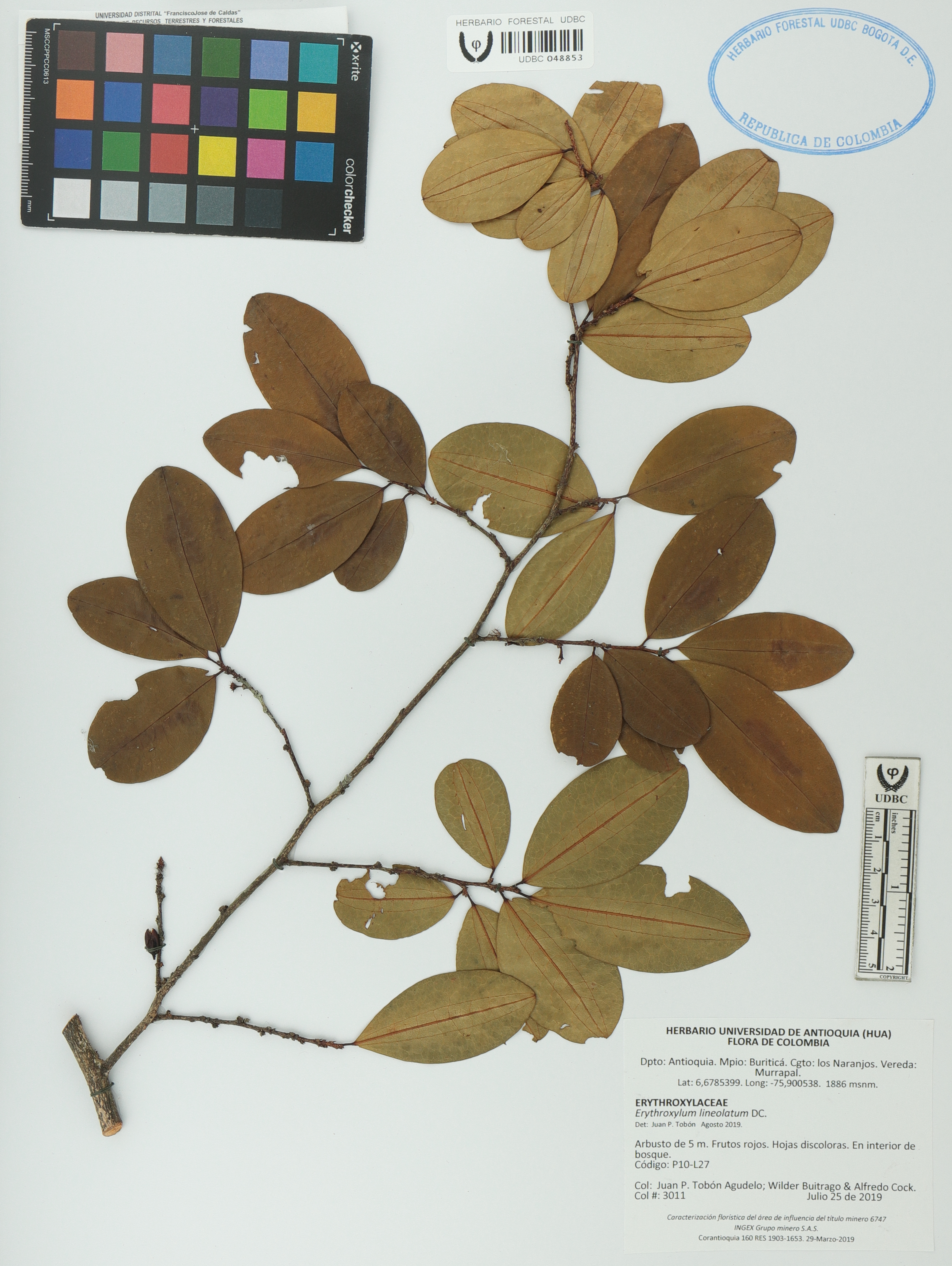 | dc.description | Fotografía del ejemplar Tobón-A., J. 3011, determinado como Erythroxylum lineolatum en el año 2019 | |