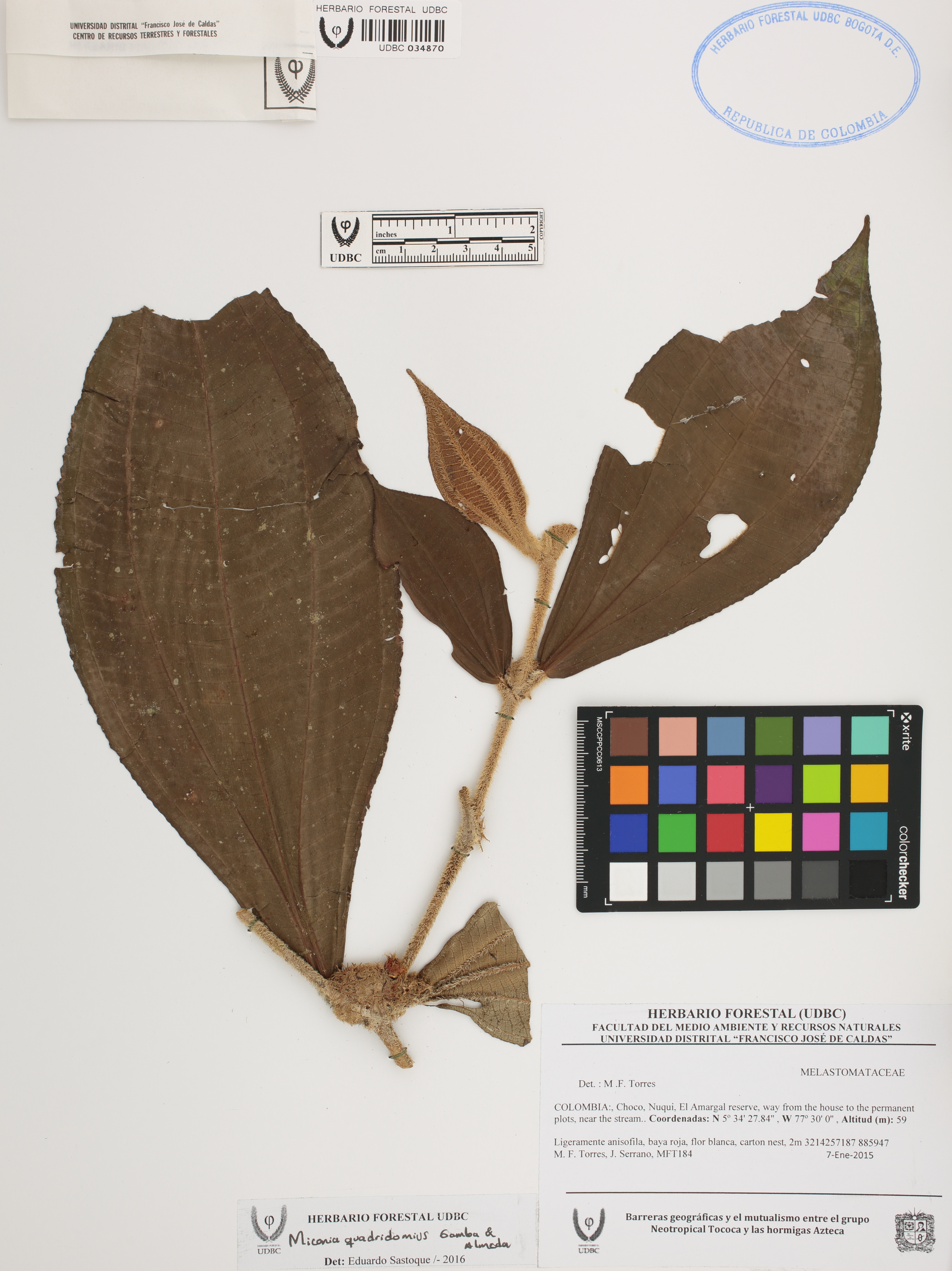Fotografía del ejemplar Torres, M. 184, determinado como Miconia quadridomius en el año 2016