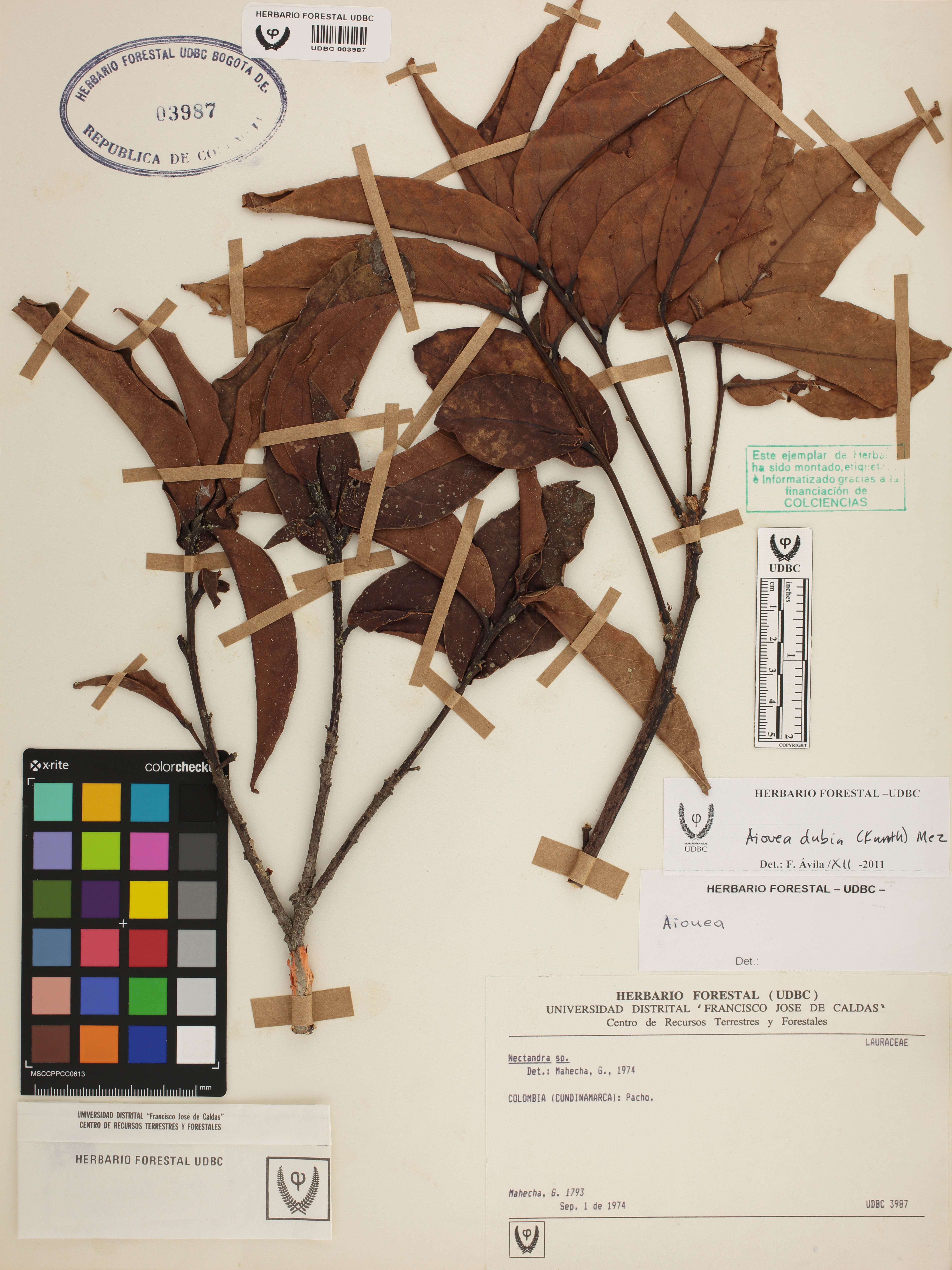 | dc.description | Fotografía del ejemplar Mahecha, G. 1793, determinado como Aiouea dubia en el año 2011 | |