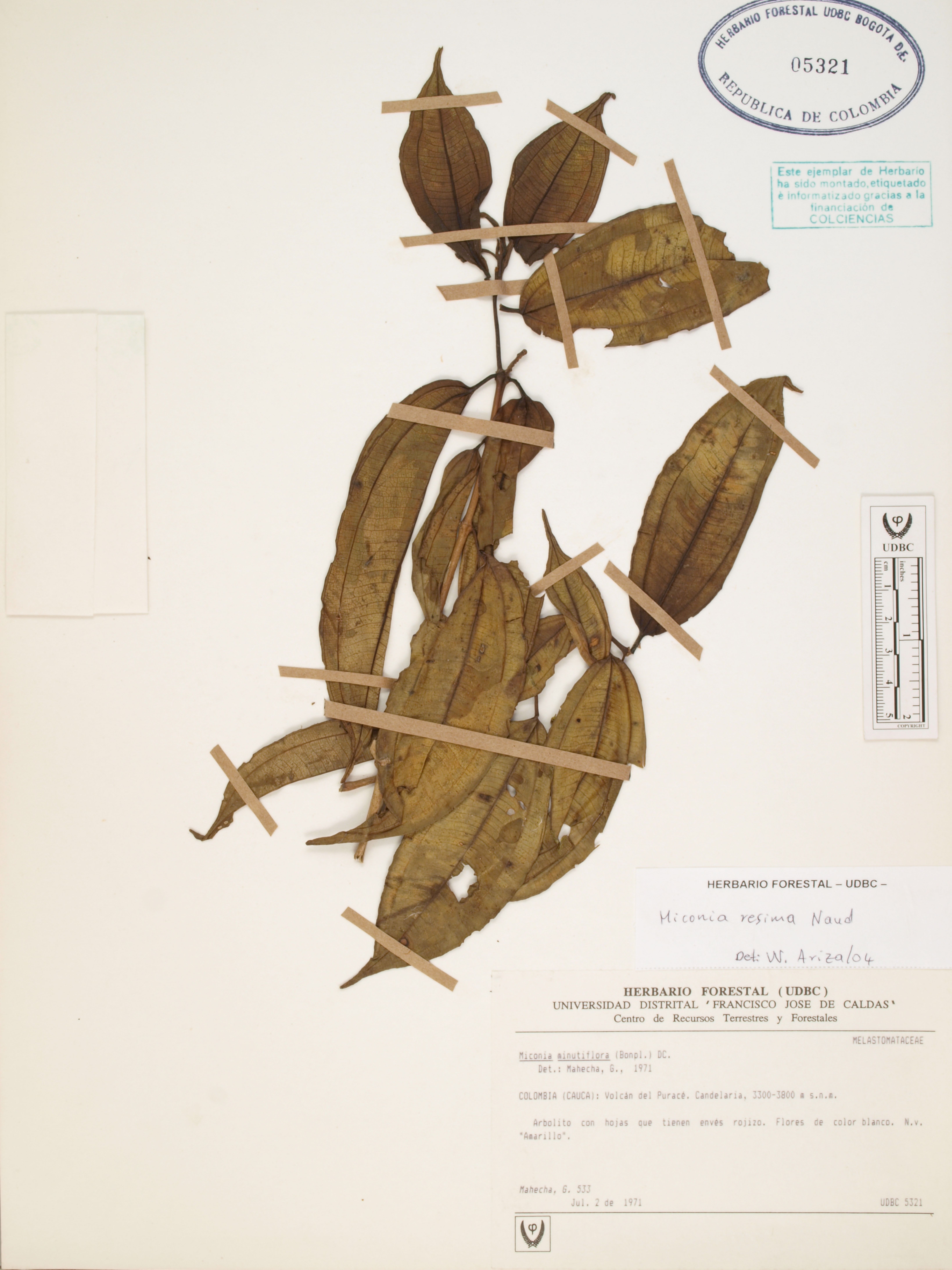 Fotografía del ejemplar Mahecha, G. 533, determinado como Miconia resima