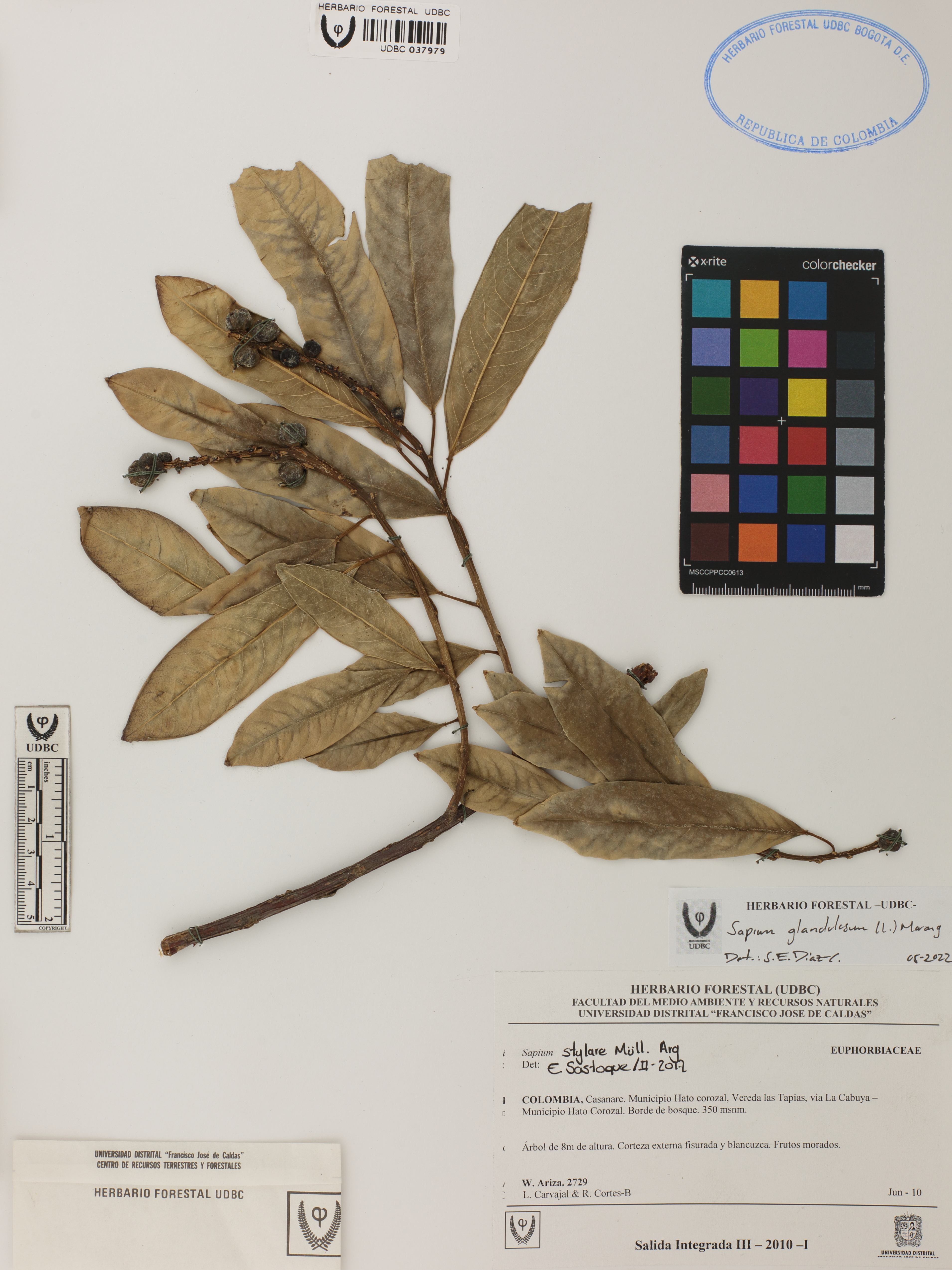 | dc.description | Fotografía del ejemplar Ariza, W. 2729, determinado como Sapium glandulosum en el año 2022 | |