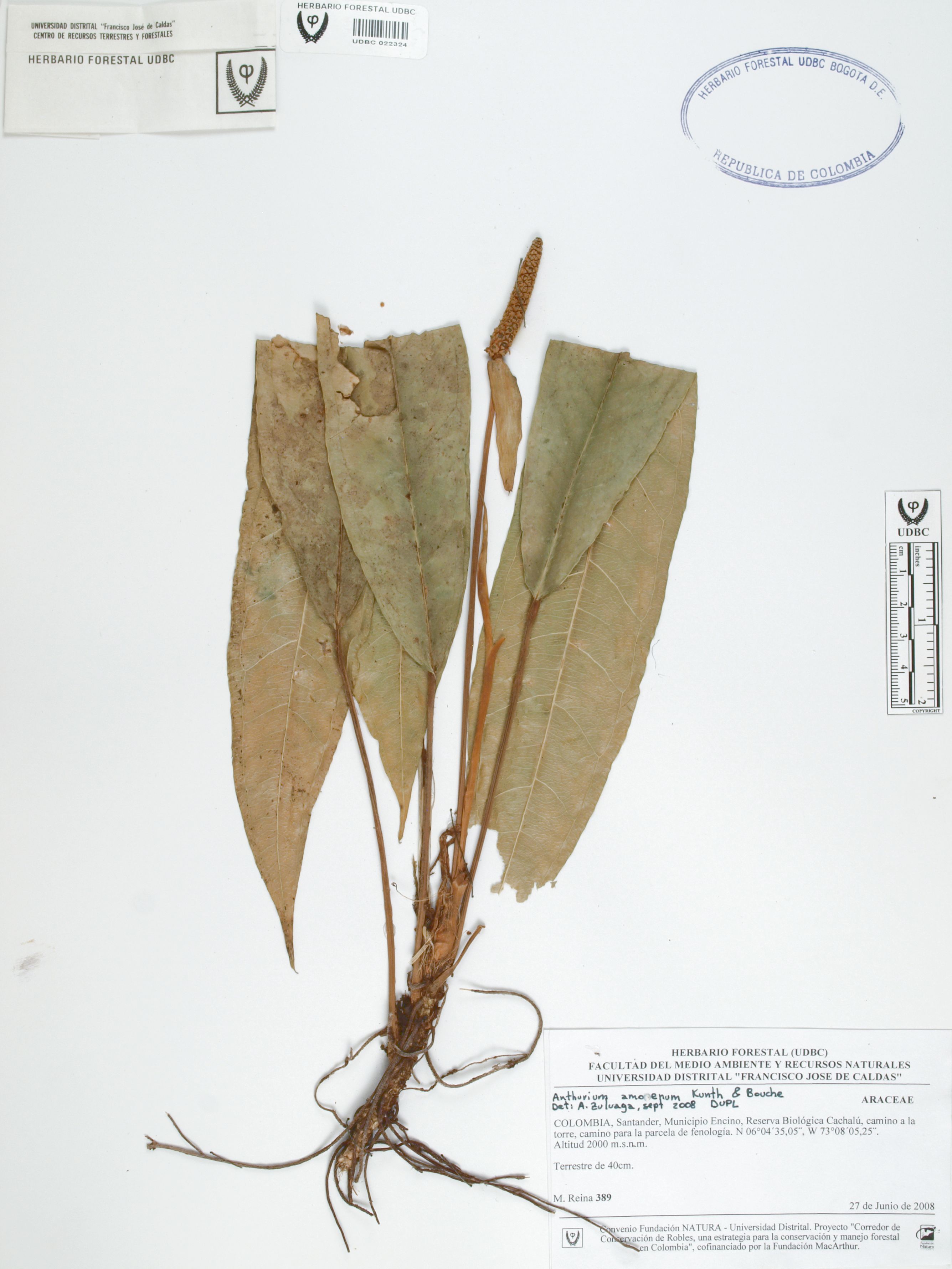 Fotografía del ejemplar Reina, M. 389, determinado como Anthurium amoenum en el año 2008