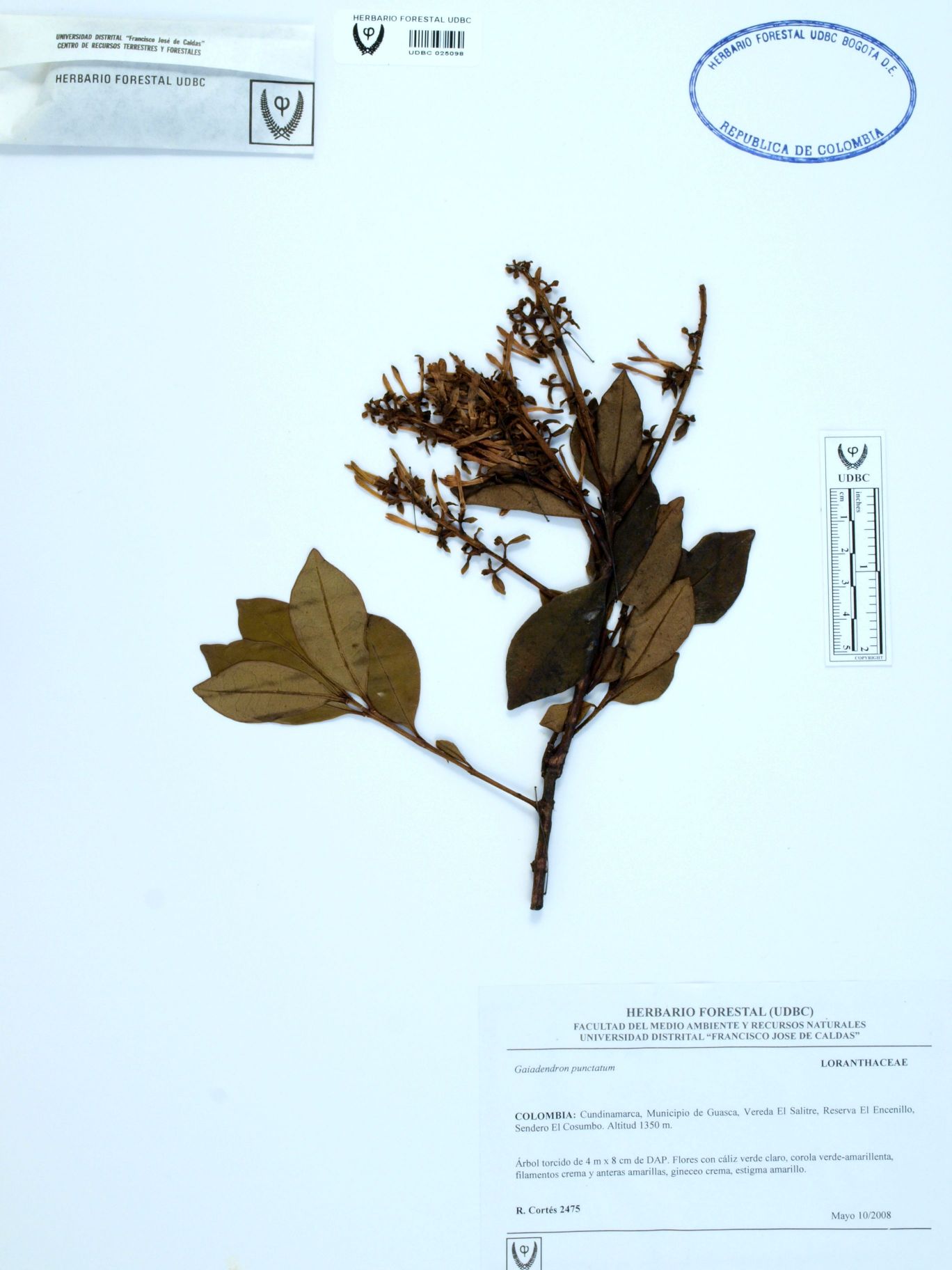 Fotografía del ejemplar Cortés-B., R. 2475, determinado como Gaiadendron punctatum