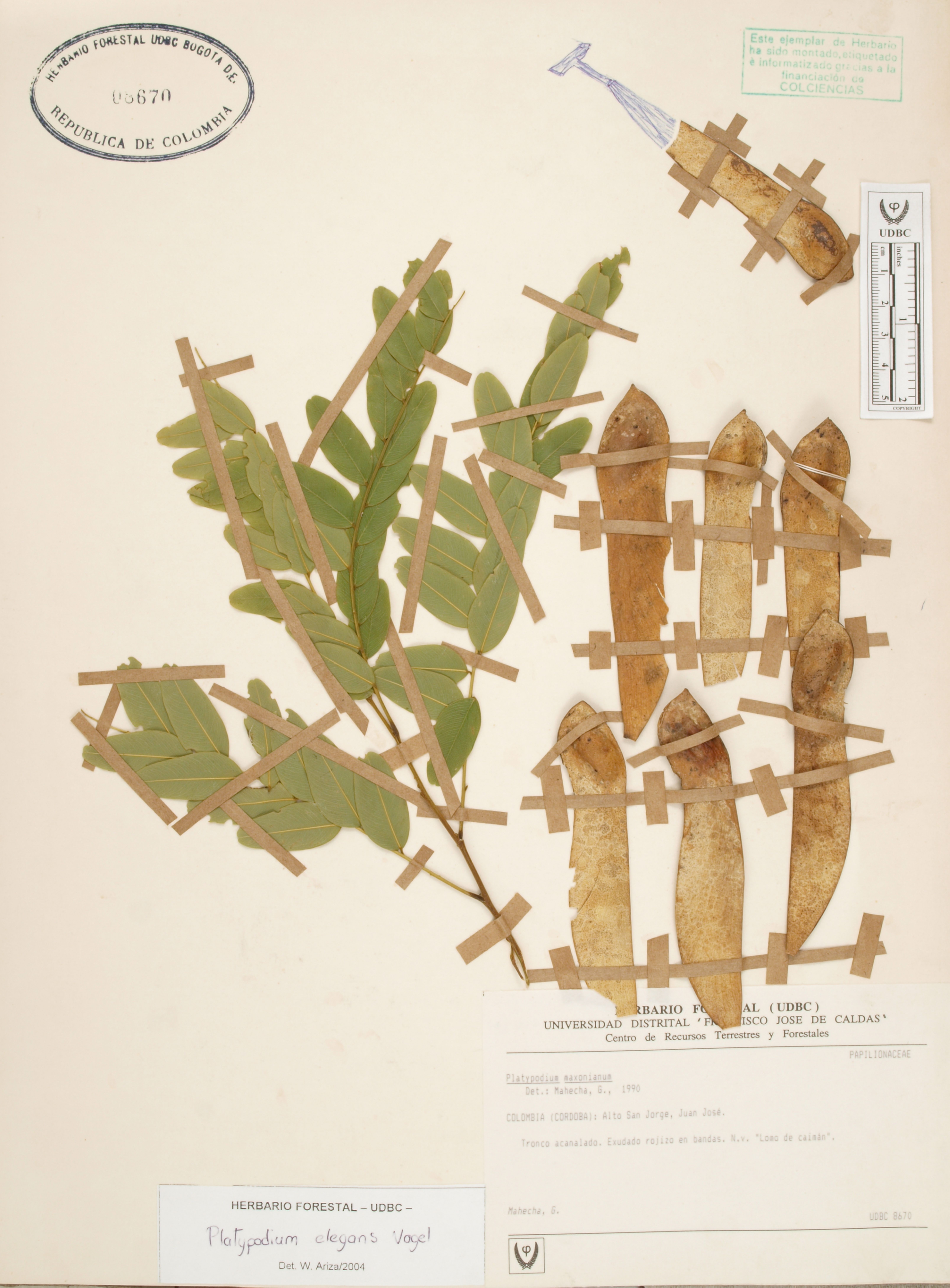 | dc.description | Fotografía del ejemplar Mahecha, G., determinado como Platypodium elegans | |