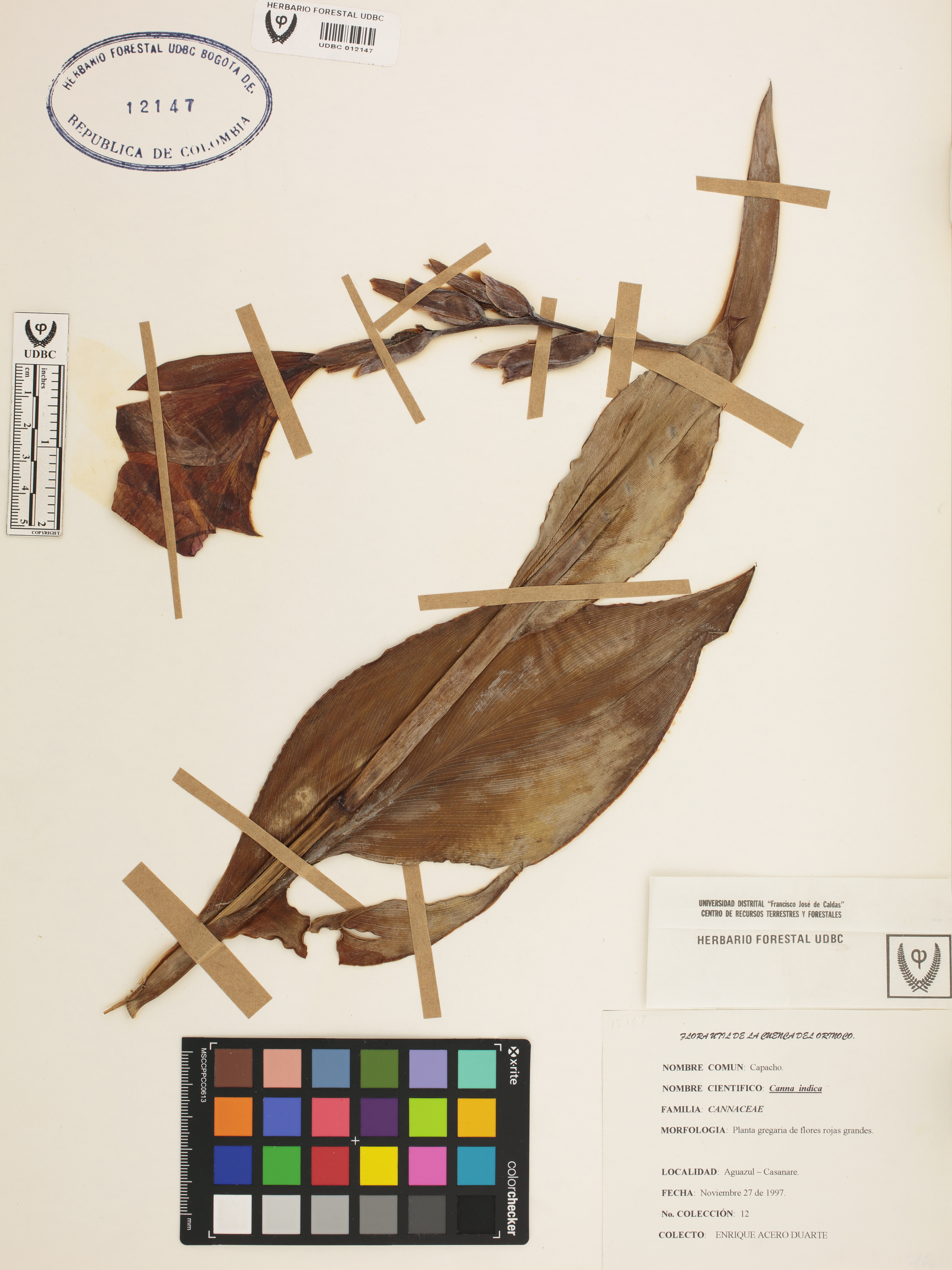 Fotografía del ejemplar Acero, E. 12, determinado como Canna indica