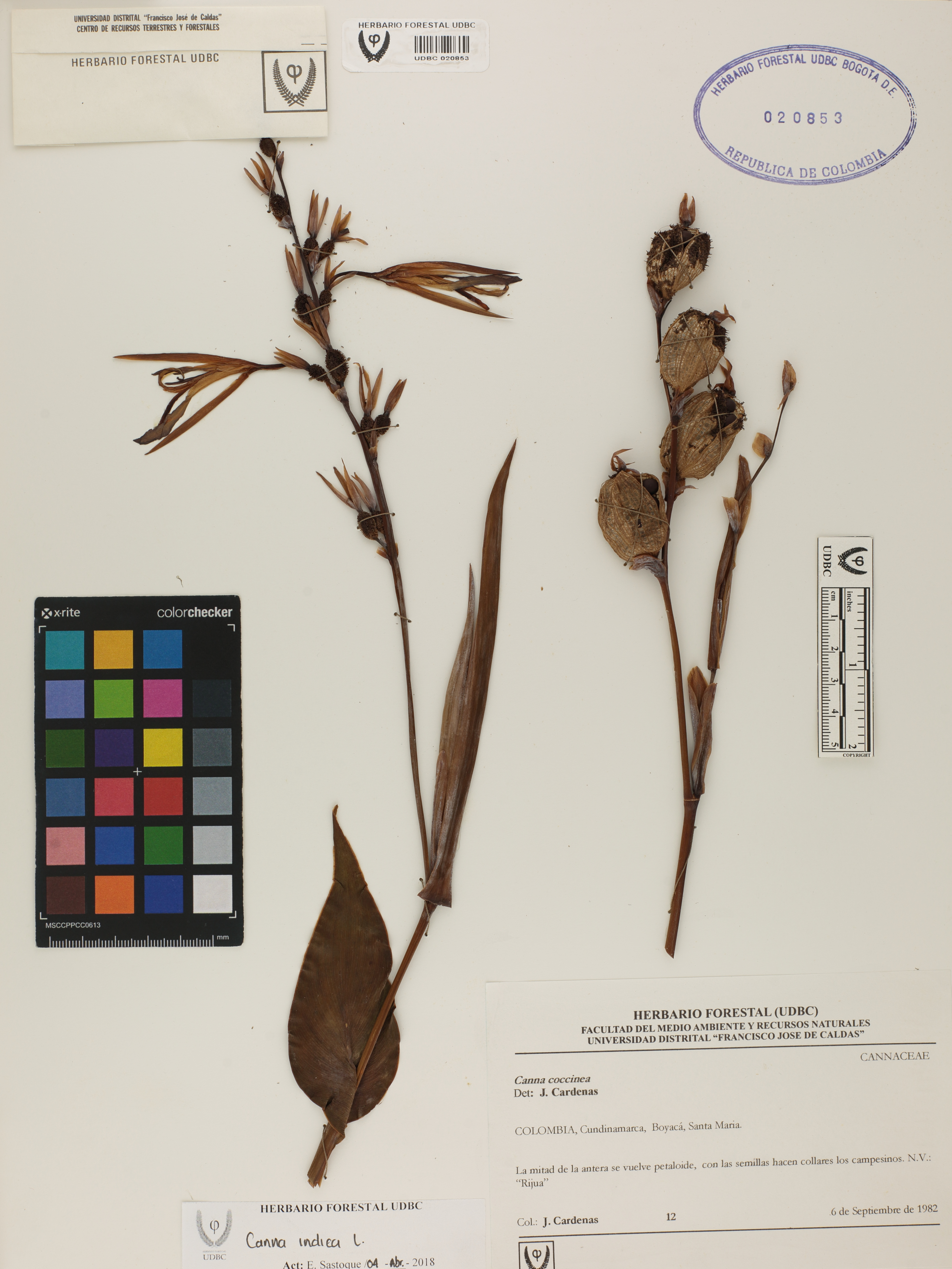 Fotografía del ejemplar Cárdenas, J. 12, determinado como Canna indica
