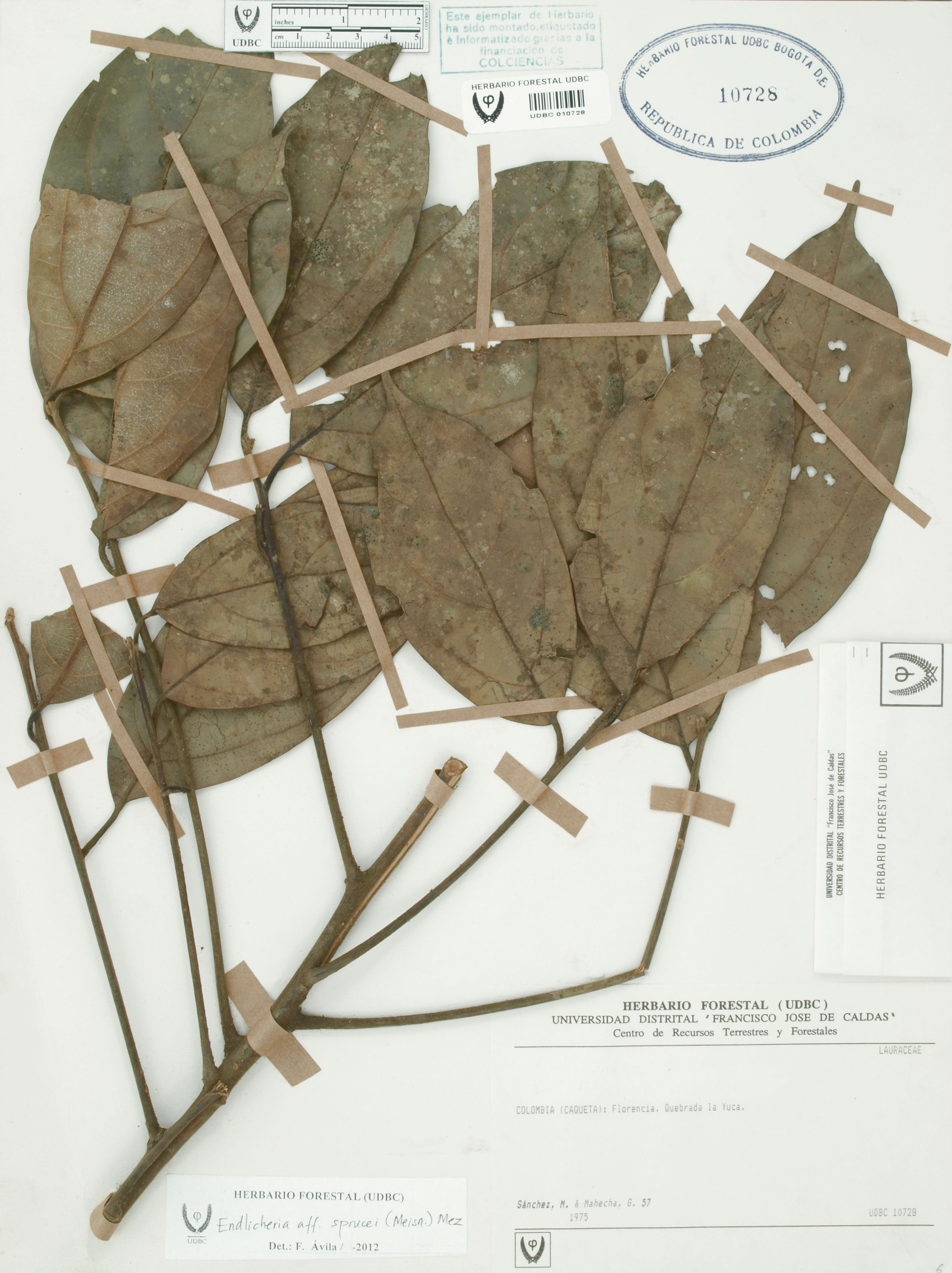 Fotografía del ejemplar Sánchez, M. 57, determinado como Endlicheria sprucei en el año 2012