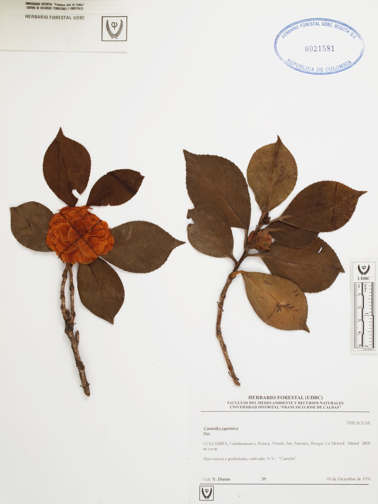 Fotografía del ejemplar Durán, Y. 39, determinado como Camellia japonica