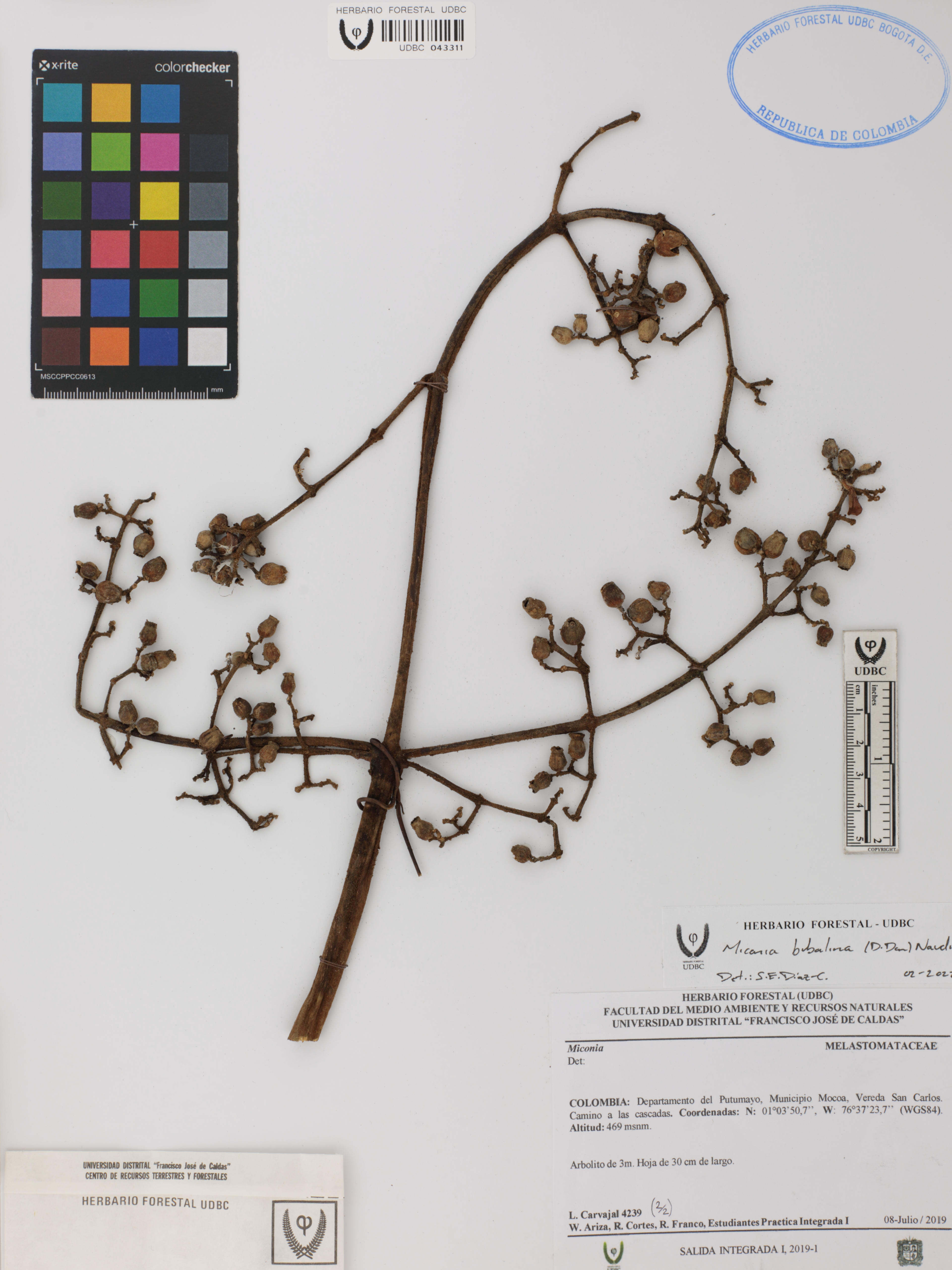 Fotografía del ejemplar Carvajal, L. 4239, determinado como Miconia bubalina en el año 2022