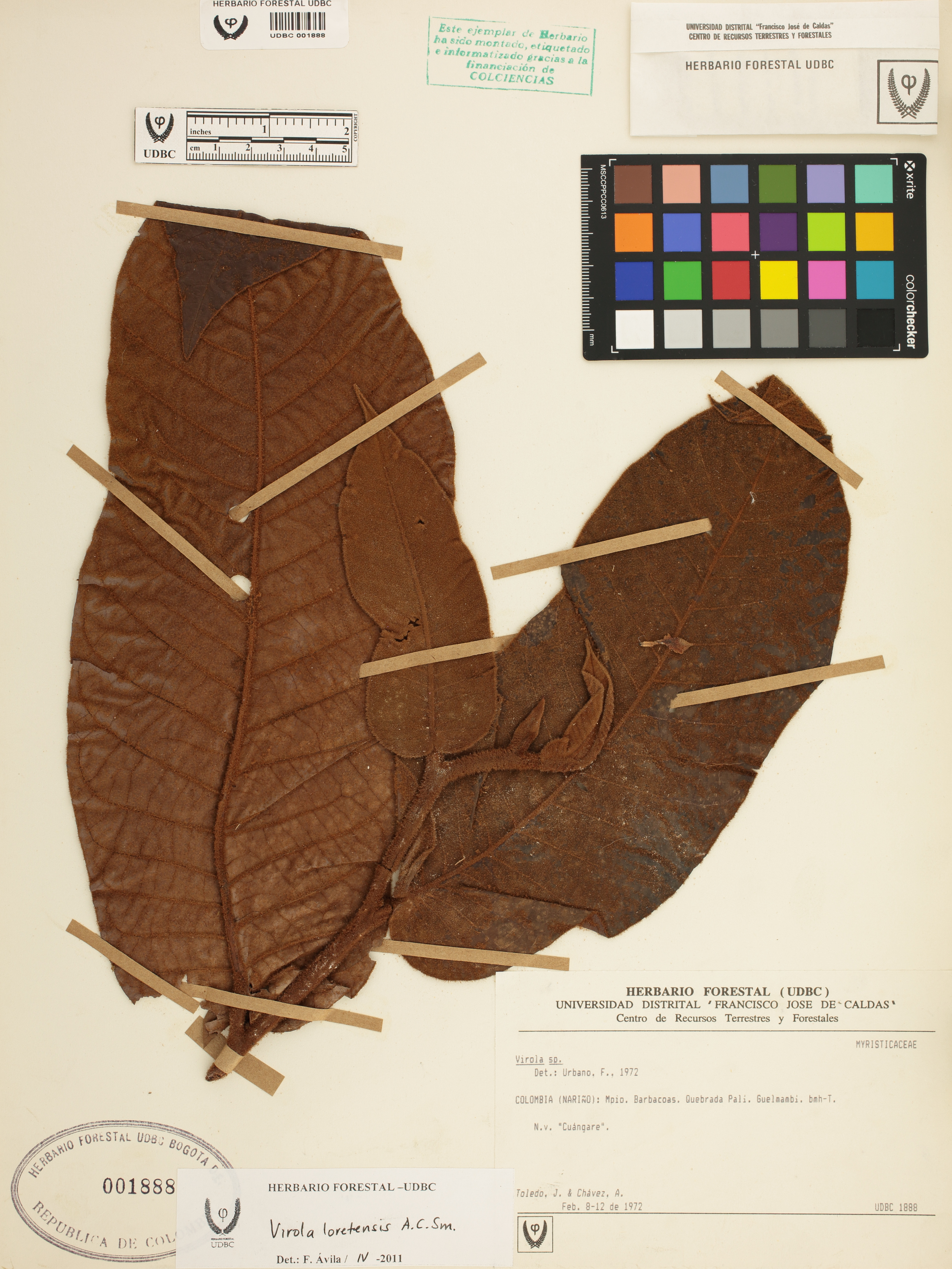 Fotografía del ejemplar Toledo, J., determinado como Virola loretensis en el año 2011