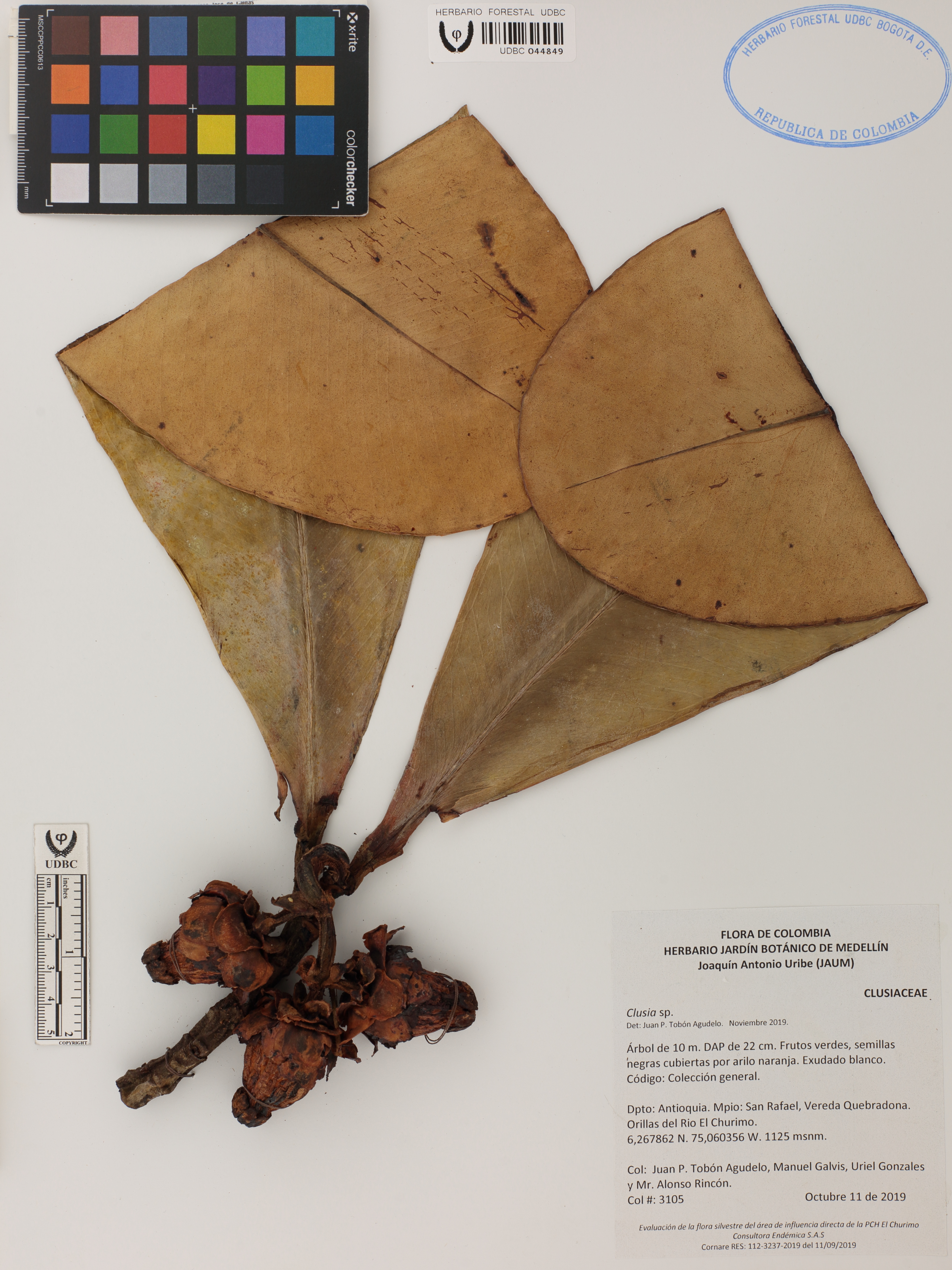 Fotografía del ejemplar Tobón-Agudelo, J. 3105, determinado como Clusia sp. en el año 2019