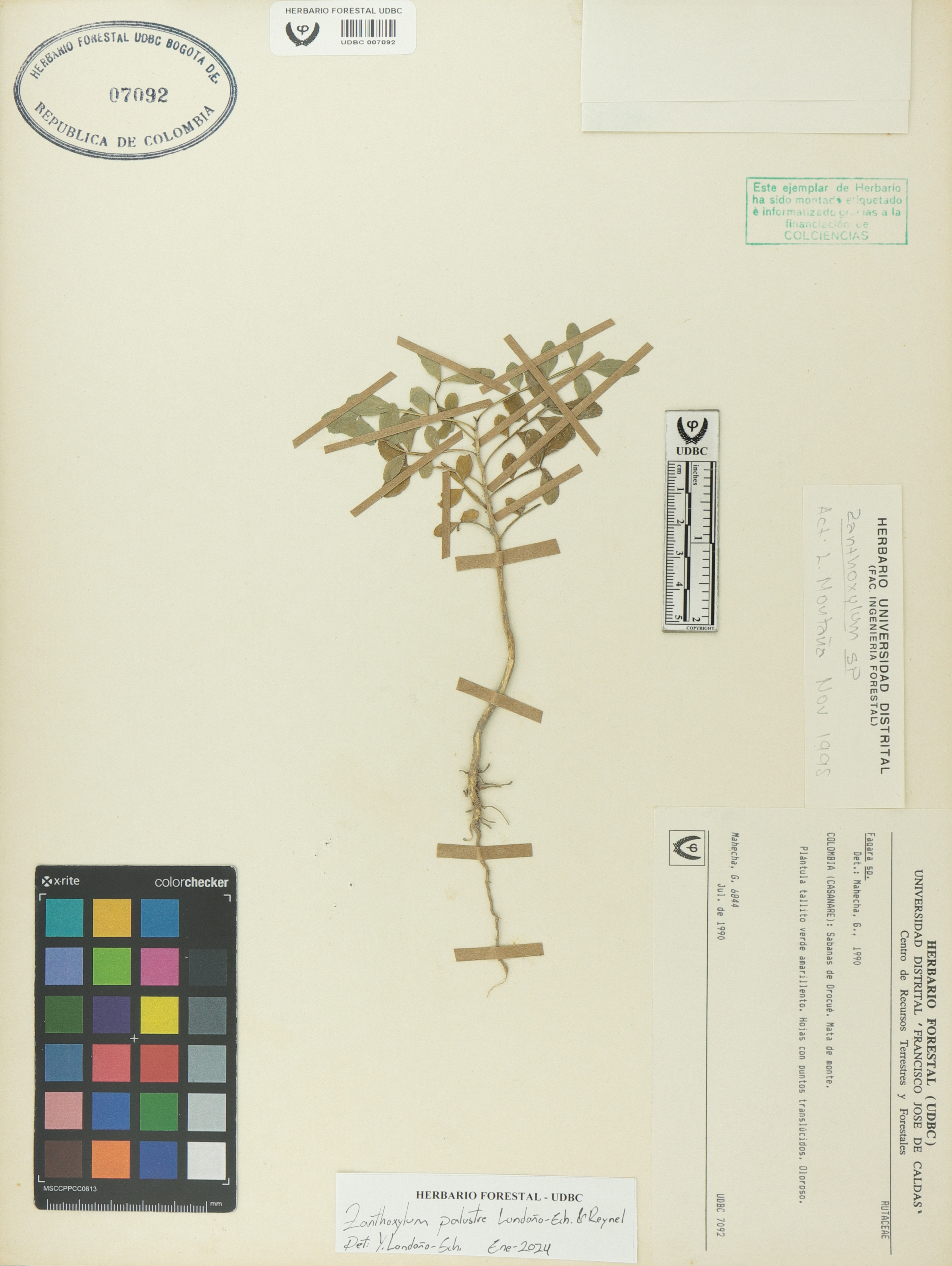 Fotografía del ejemplar Mahecha, G. 6844, determinado como Zanthoxylum palustre en el año 2024