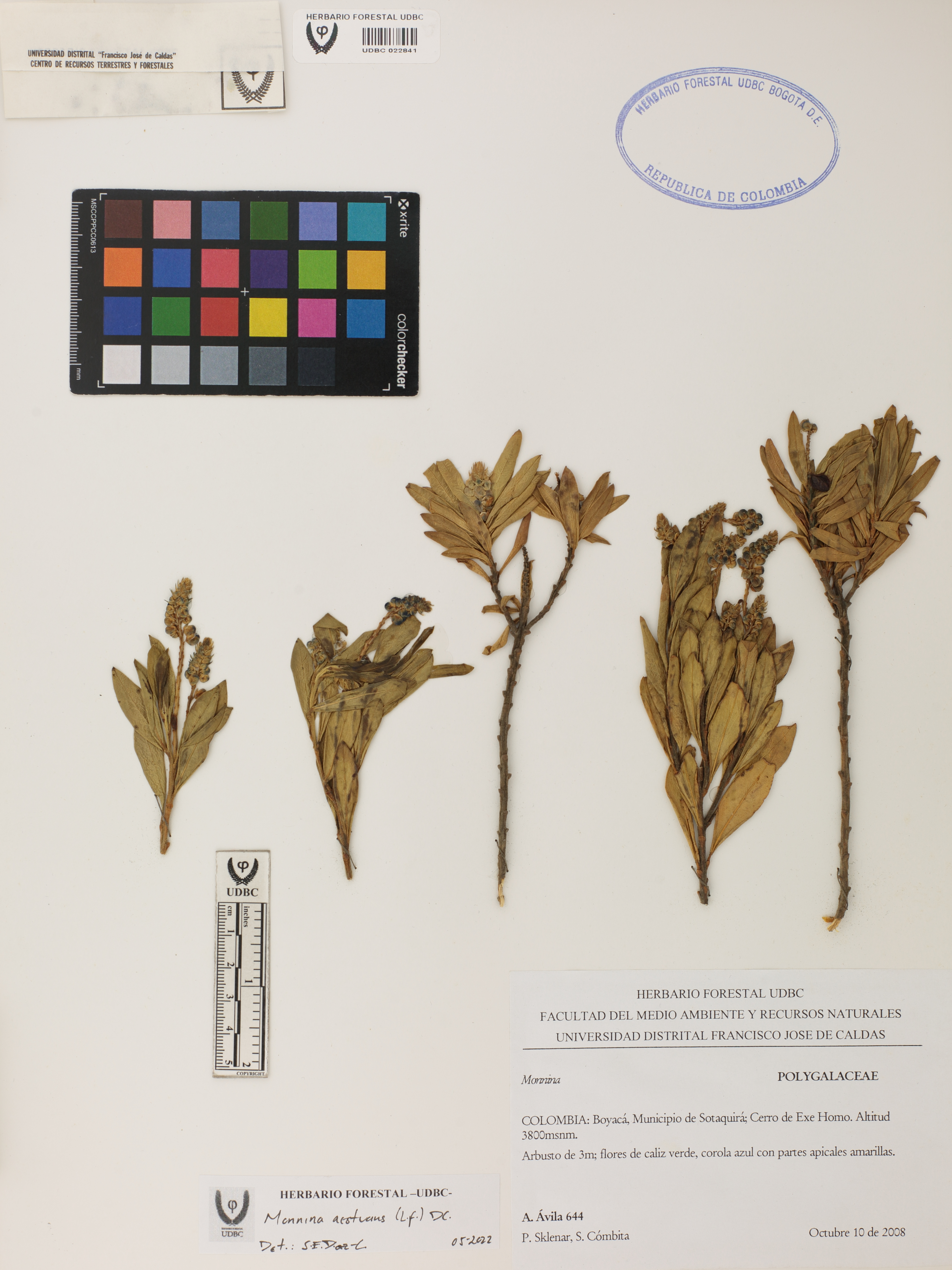 Fotografía del ejemplar Ávila, A. 644, determinado como Monnina aestuans en el año 2022
